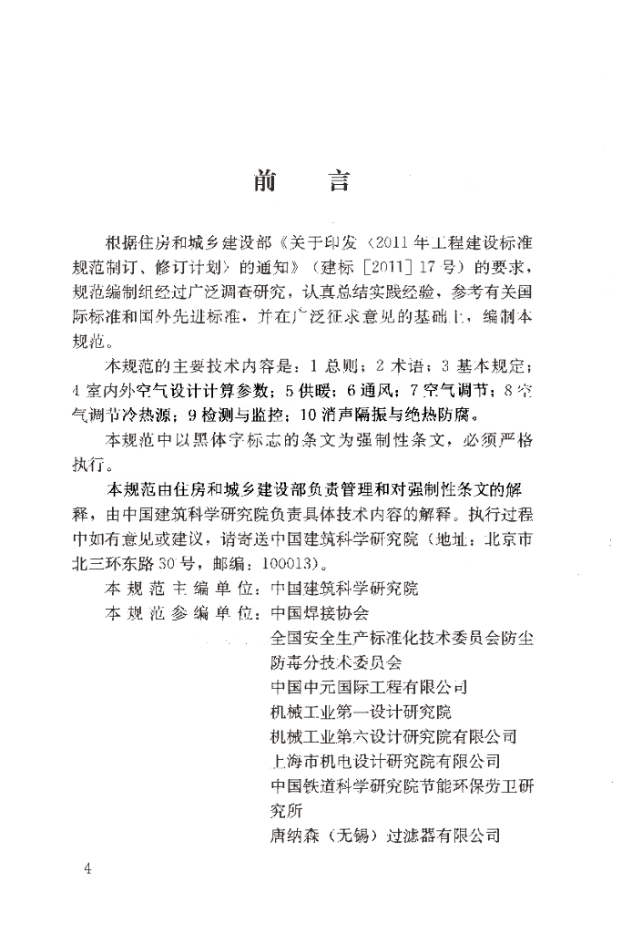 中国建筑科学研究院、中国焊接协会、全国安全生产标准化技术委员会防尘防毒分技术委员会、中国中元国际工程有限公司、机械工业第一设计研究院、机械工业第六设计研究院有限公司、上海市机电设计研究院有限公司、中国铁道科学研究院节能环保劳卫研究所、唐纳森(无锡)过滤器有限公司、河南乾丰暖通科技股份有限公司、烟台宝源净化有限公司、大连瑞普环保科技有限公司、昆山台佳机电有限公司、际高建业有限公司、山东欧锴空调科技有限公司、中国建筑技术集团有限公司、北京空研冷暖设备安装工程技术有限公司、青岛森瑞普热能有限公司、浙江瑞邦建设工