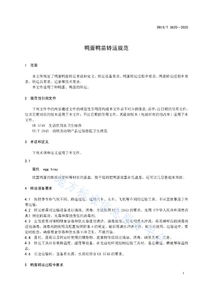 DB15/T 3820-2025 鸭蛋鸭苗转运规范