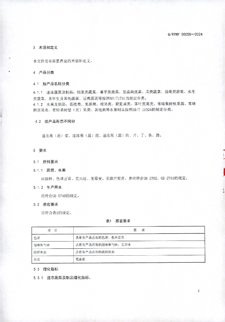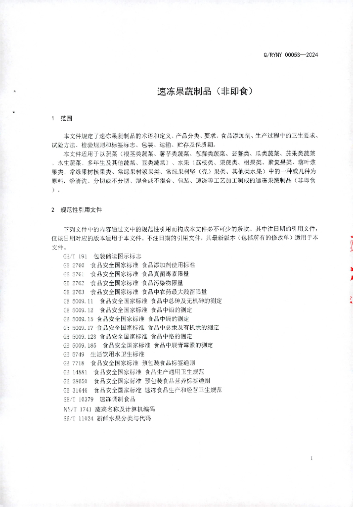Q/RYNY 0005S-2024 速冻果蔬制品(非即食)