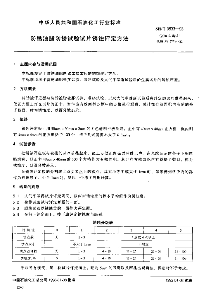 SH/T 0533-1993 防锈油脂防锈试验试片锈蚀评定方法