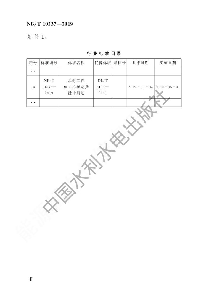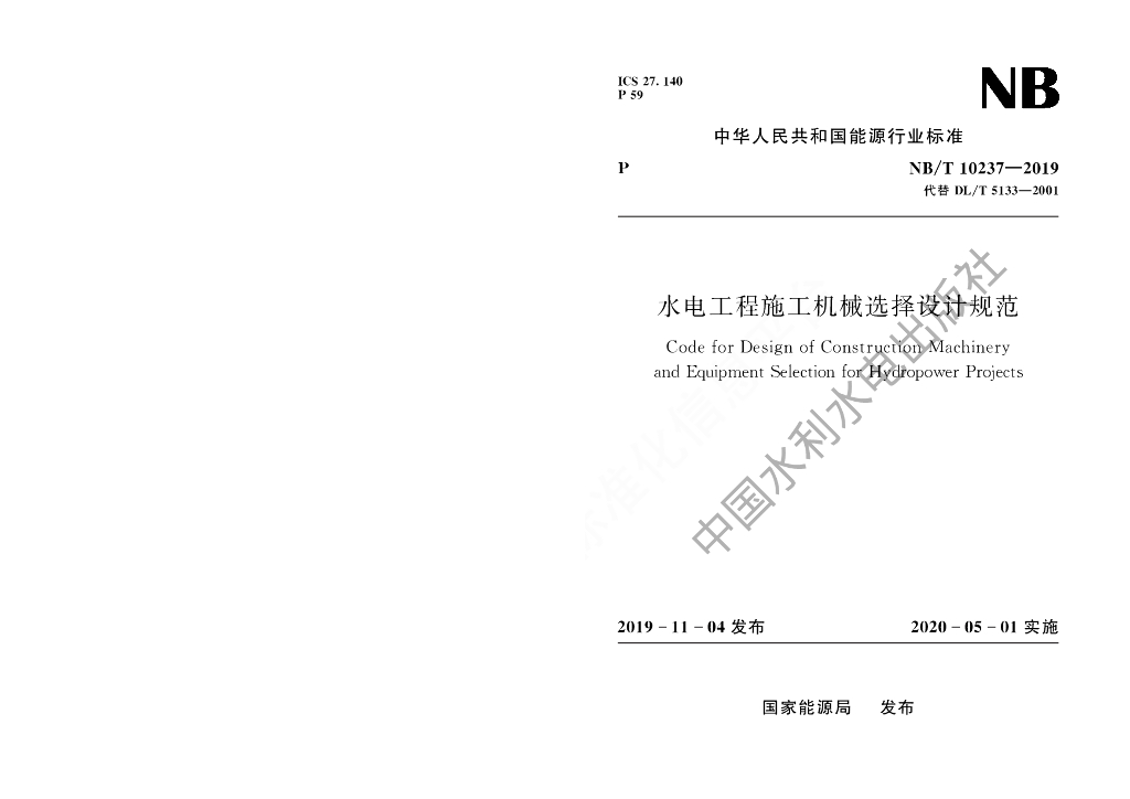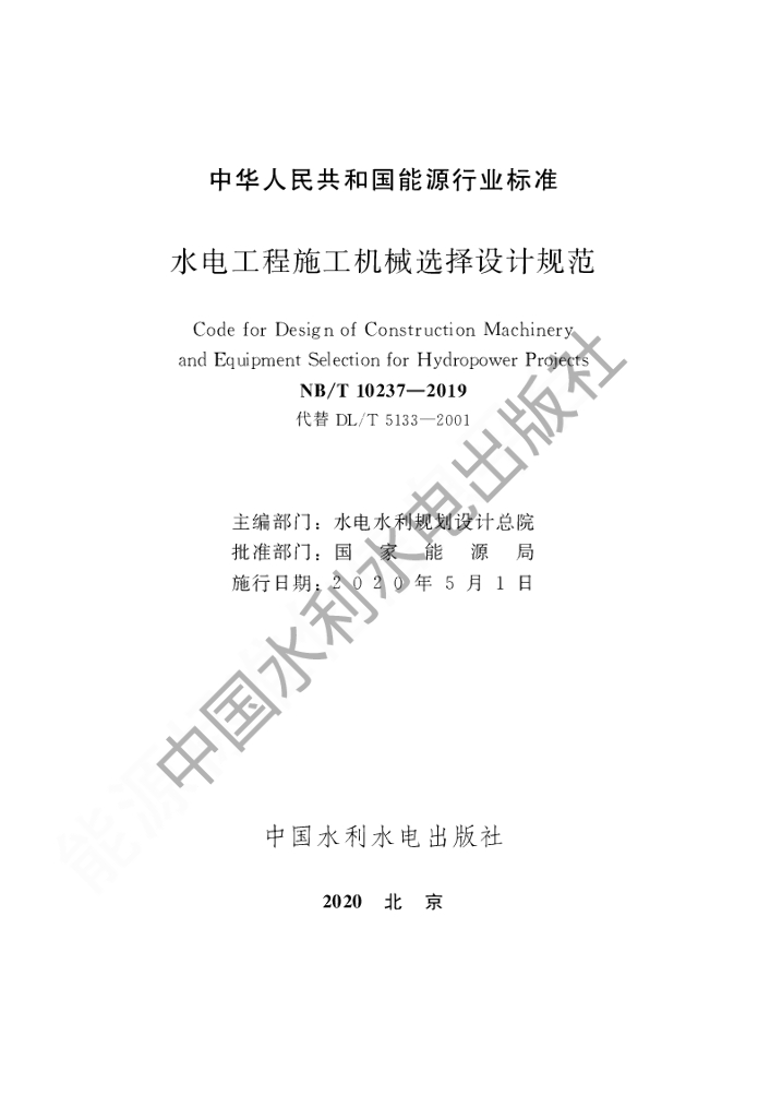 NB/T 10237-2019 水电工程施工机械选择设计规范