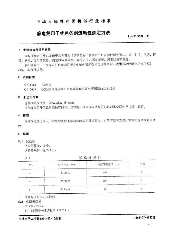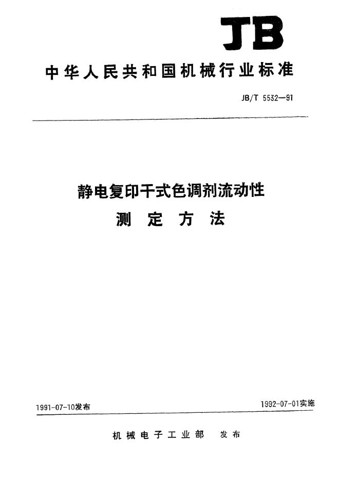 JB/T 5532-1991 静电复印干式色调剂流动性测定方法