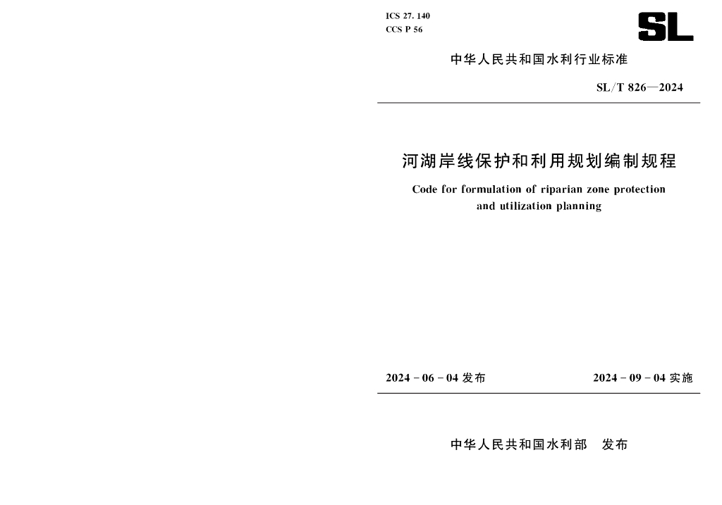 SL/T 826-2024 河湖岸线保护和利用规划编制规程