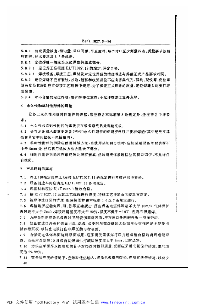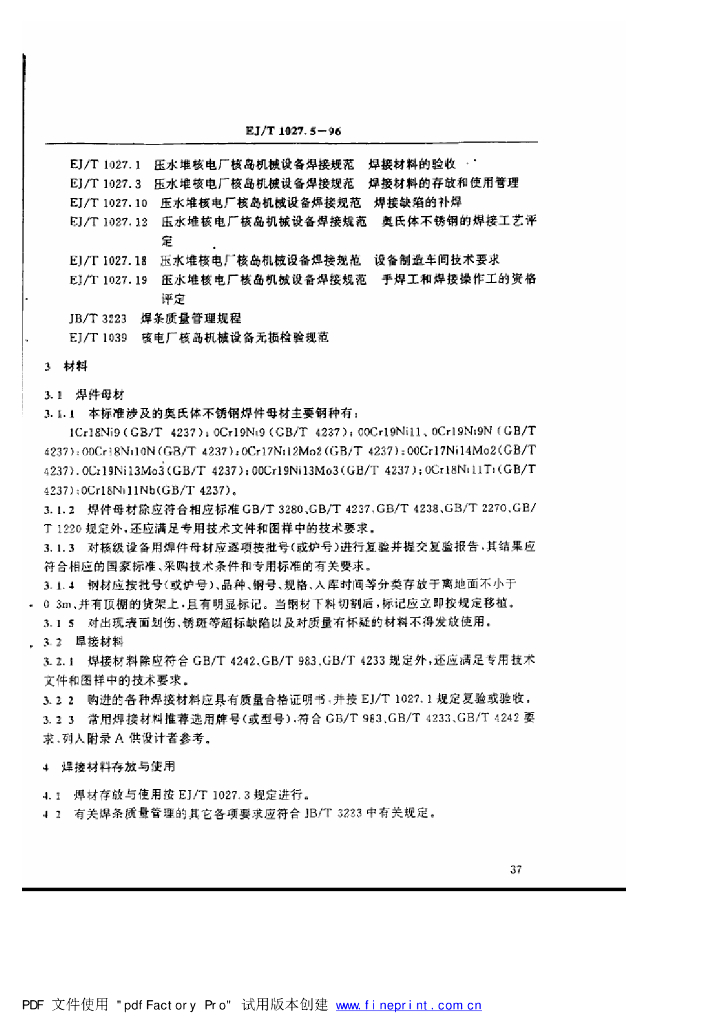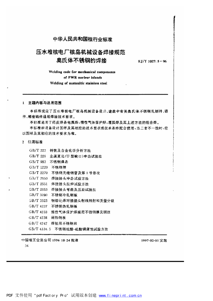 EJ/T 1027.5-1996 压水堆核电厂核岛机械设备焊接规范 奥氏体不锈钢的堆焊