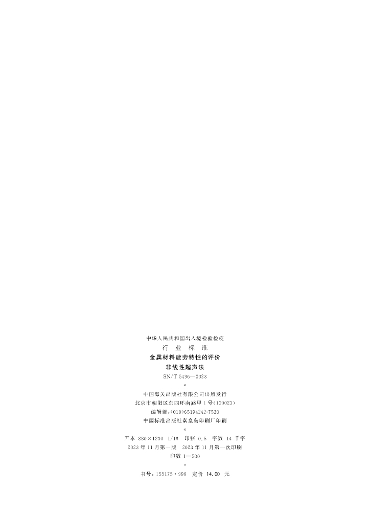 SN/T 5496-2023 金属材料疲劳特性的评价 非线性超声法