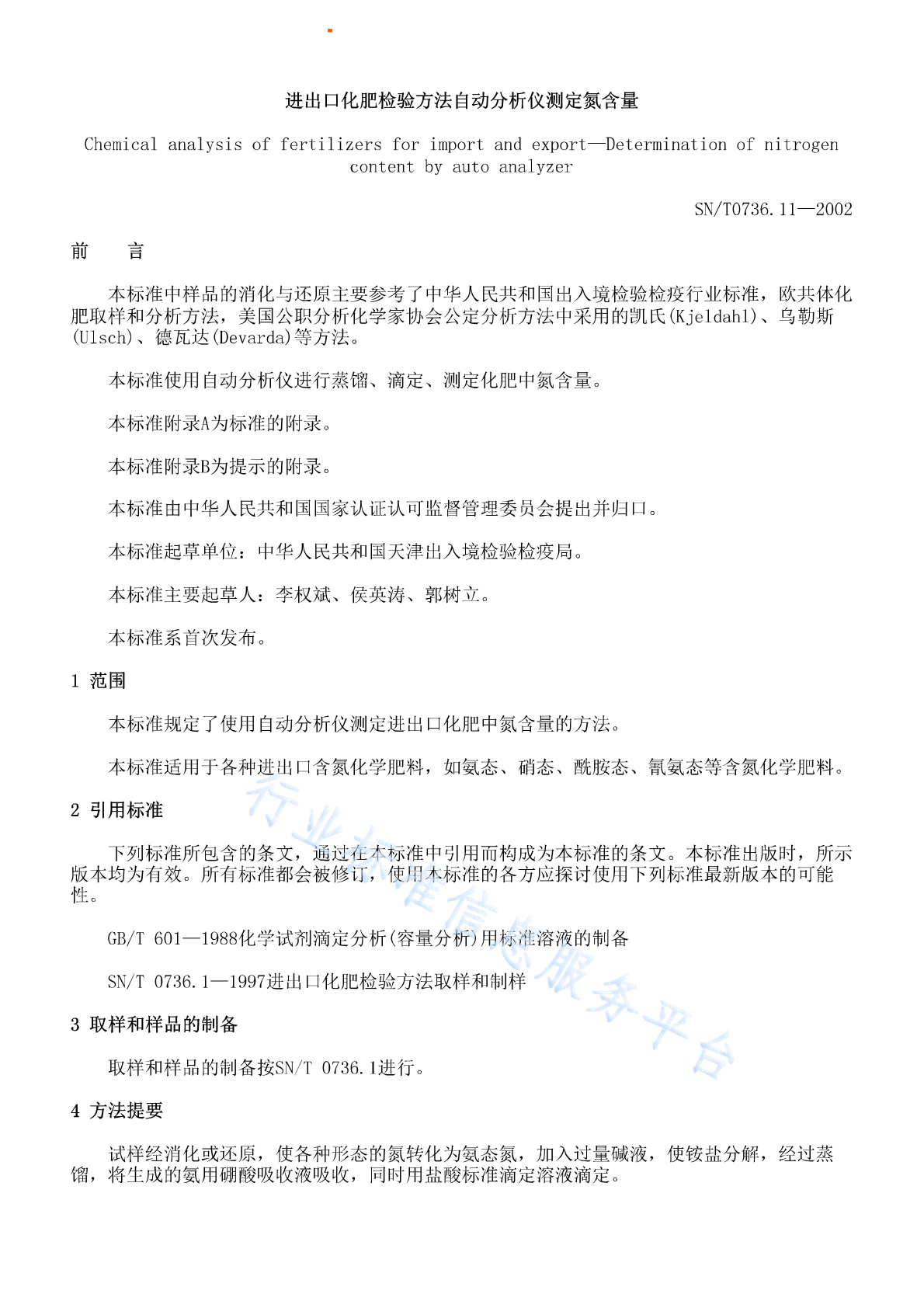 SN/T 0736.11-2002 进出口化肥检验方法 自动分析仪测定氨含量