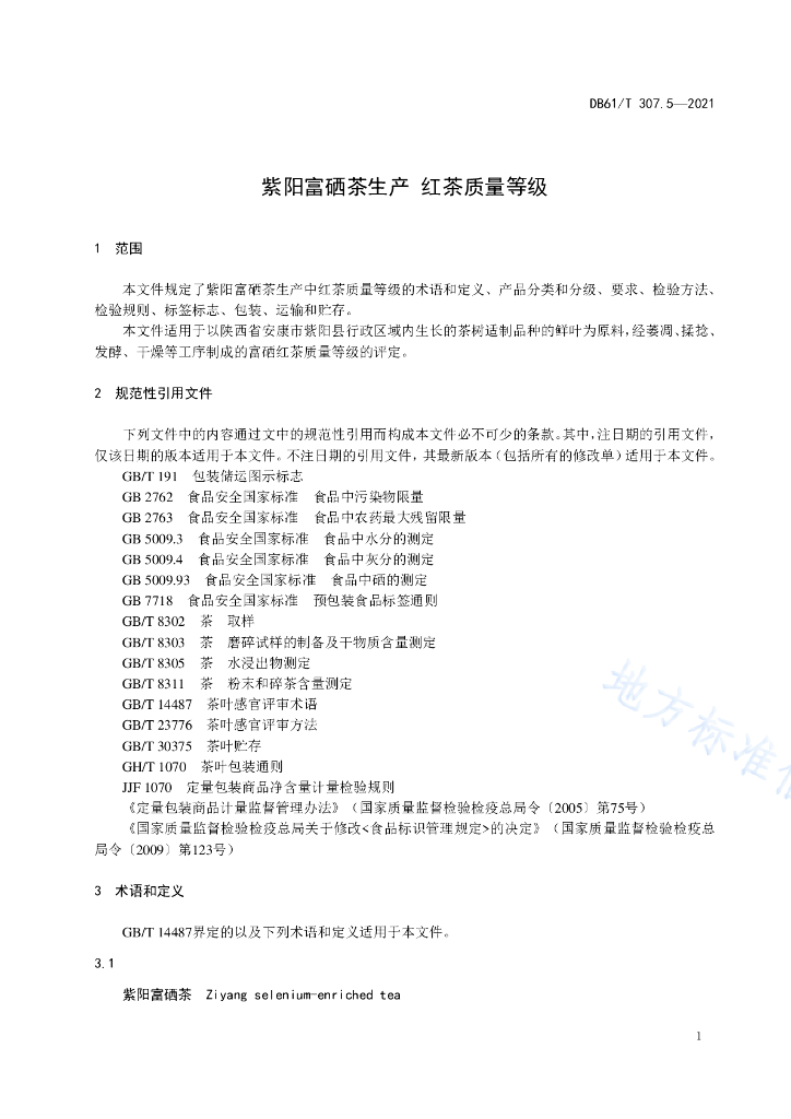 DB61/T 307.5-2021 紫阳富硒茶生产 红茶质量等级