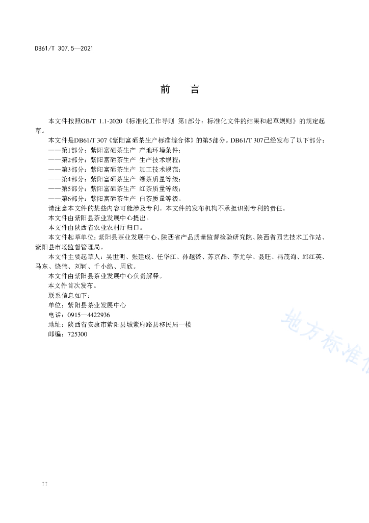 紫阳县茶业发展中心、陕西省产品质量监督检验研究院、陕西省园艺技术工作站、紫阳县市场监督管理局