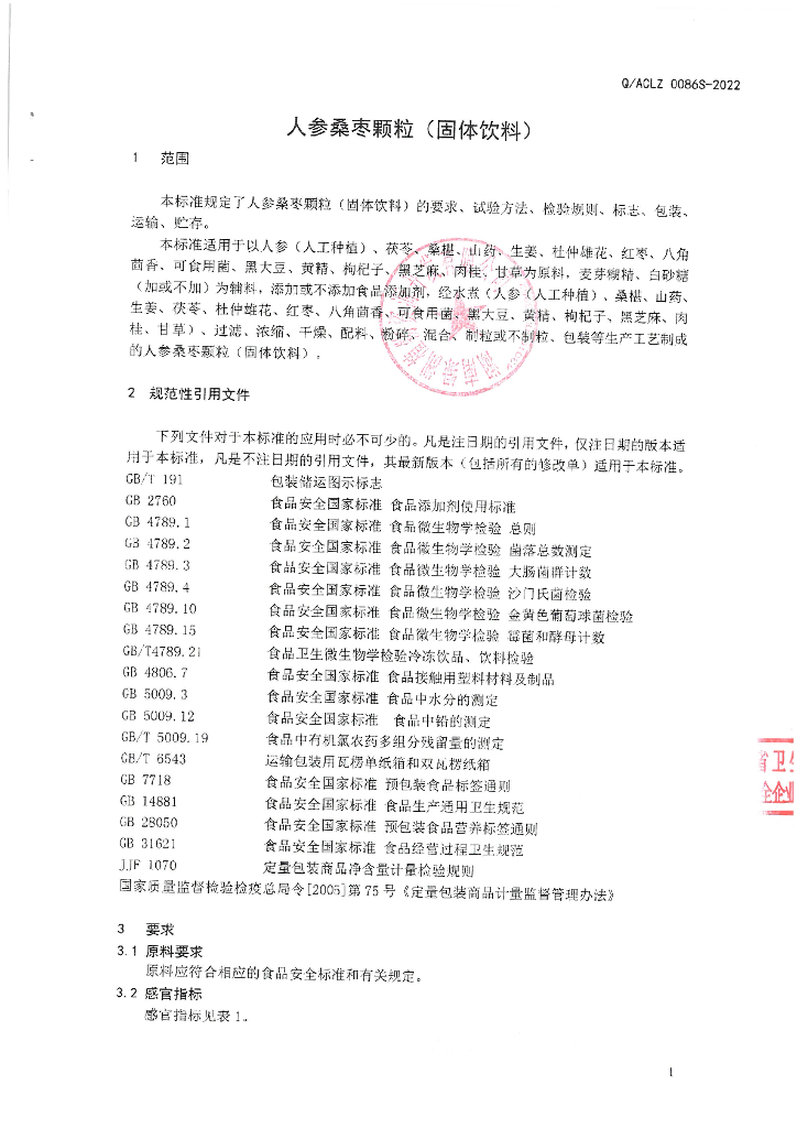 Q/ACLZ 0086S-2022 人参桑枣颗粒(固体饮料)