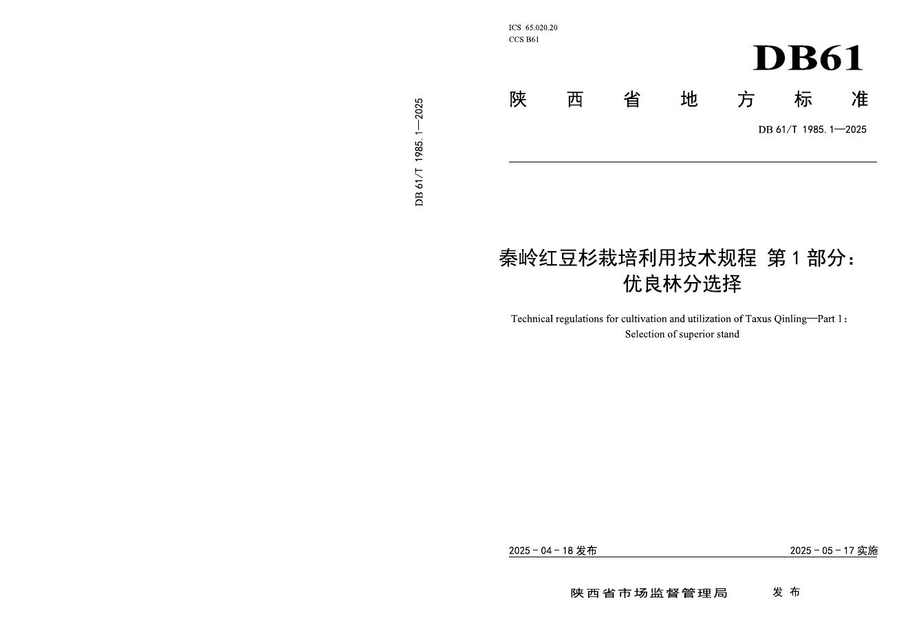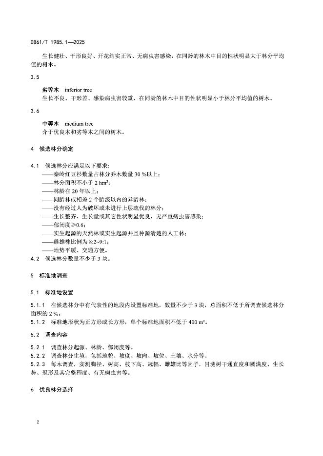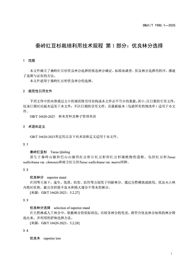 DB61/T 1985.1-2025 秦岭红豆杉栽培利用技术规程 第1部分:优良林分选择