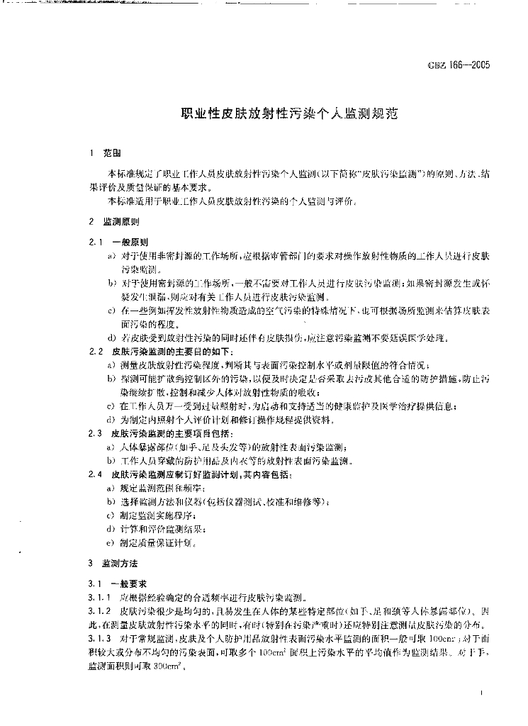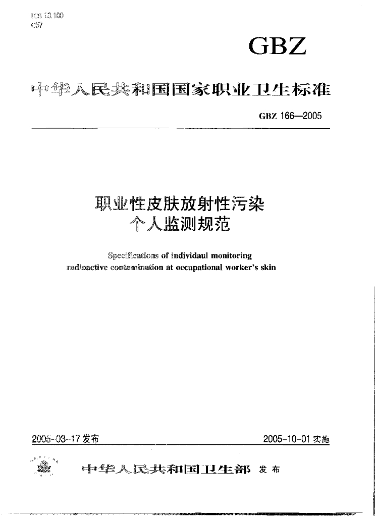 GBZ 166-2005 职业性皮肤放射性污染个人监测规范