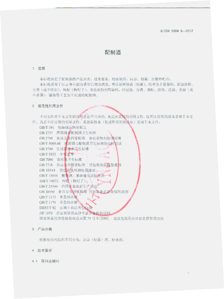 Q/CSX 0004S-2012 配制酒