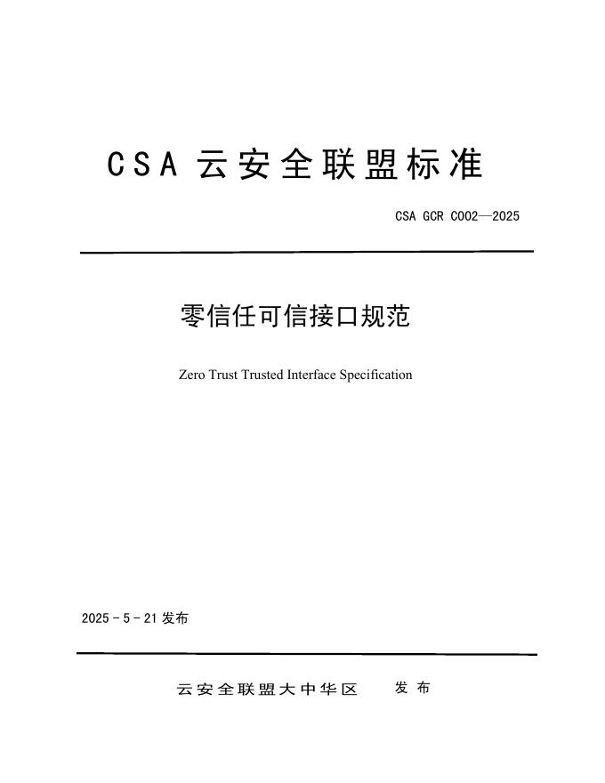 CSA GCR C002-2025 零信任可信接口规范