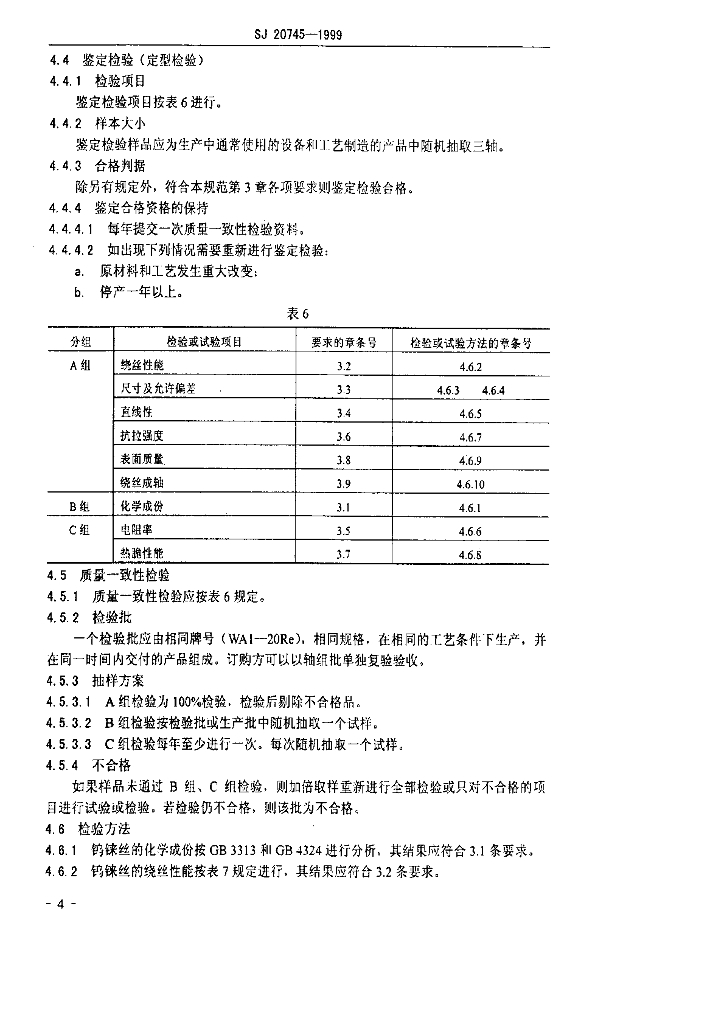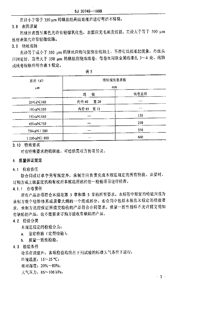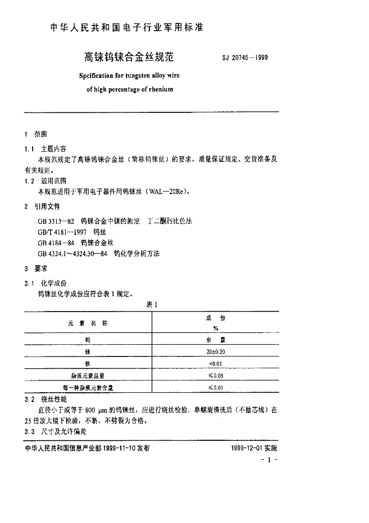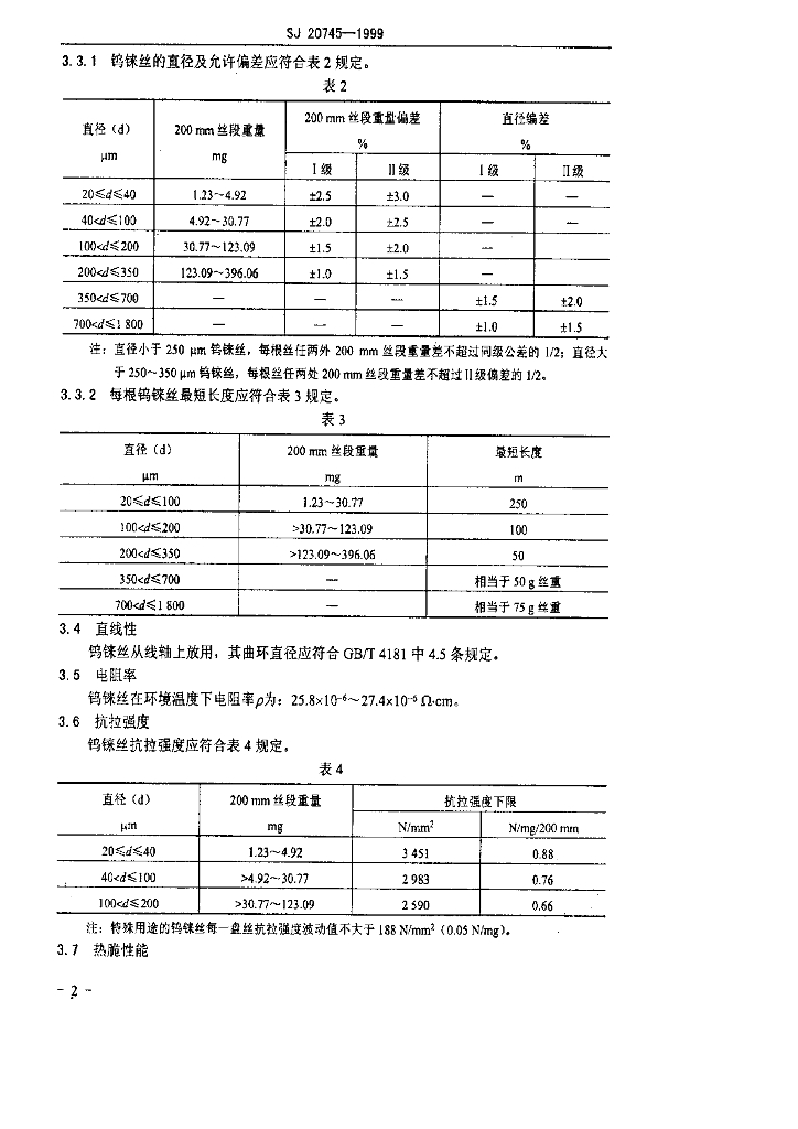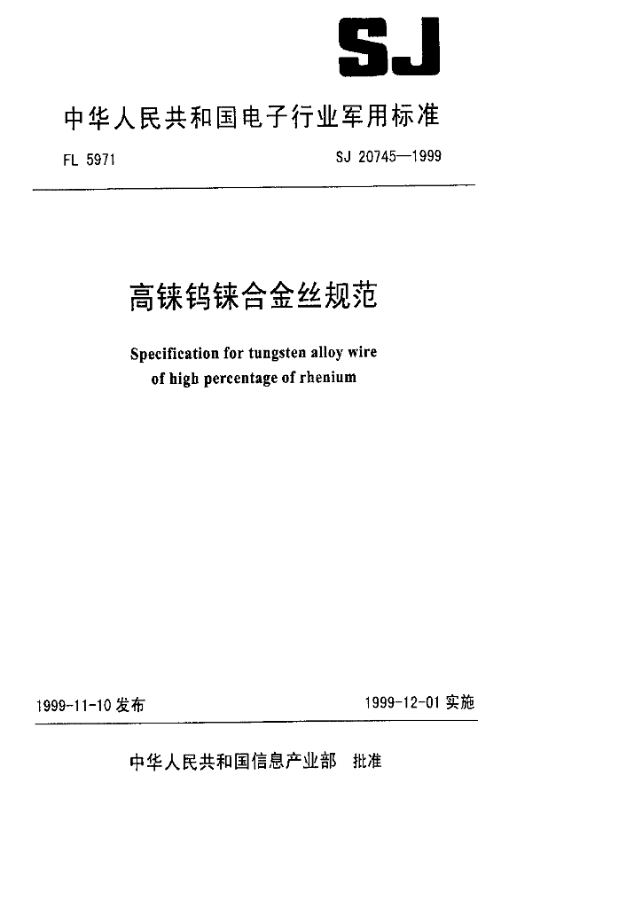 SJ 20745-1999 高铗钨铢合金丝规范