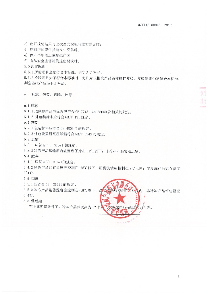 Q/XTYF 0001S-2019 咸鸭蛋黄