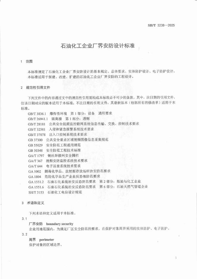 SH/T 3238-2025 石油化工企业厂界安防设计标准
