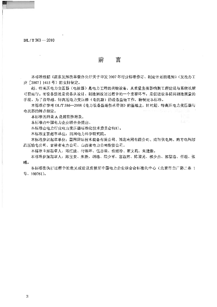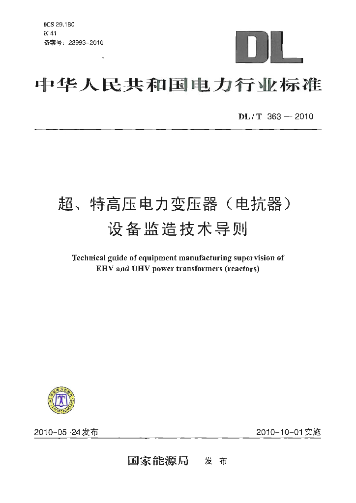 DL/T 363-2010 超、特高压电力变压器电抗器设备监造技术导则