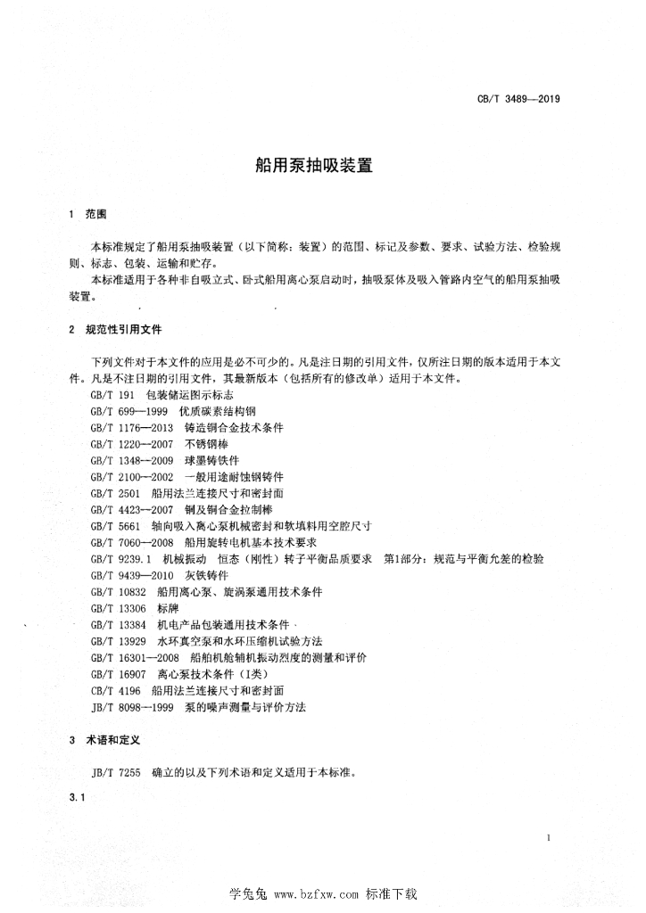 CB/T 3489-2019 船用泵抽吸装置