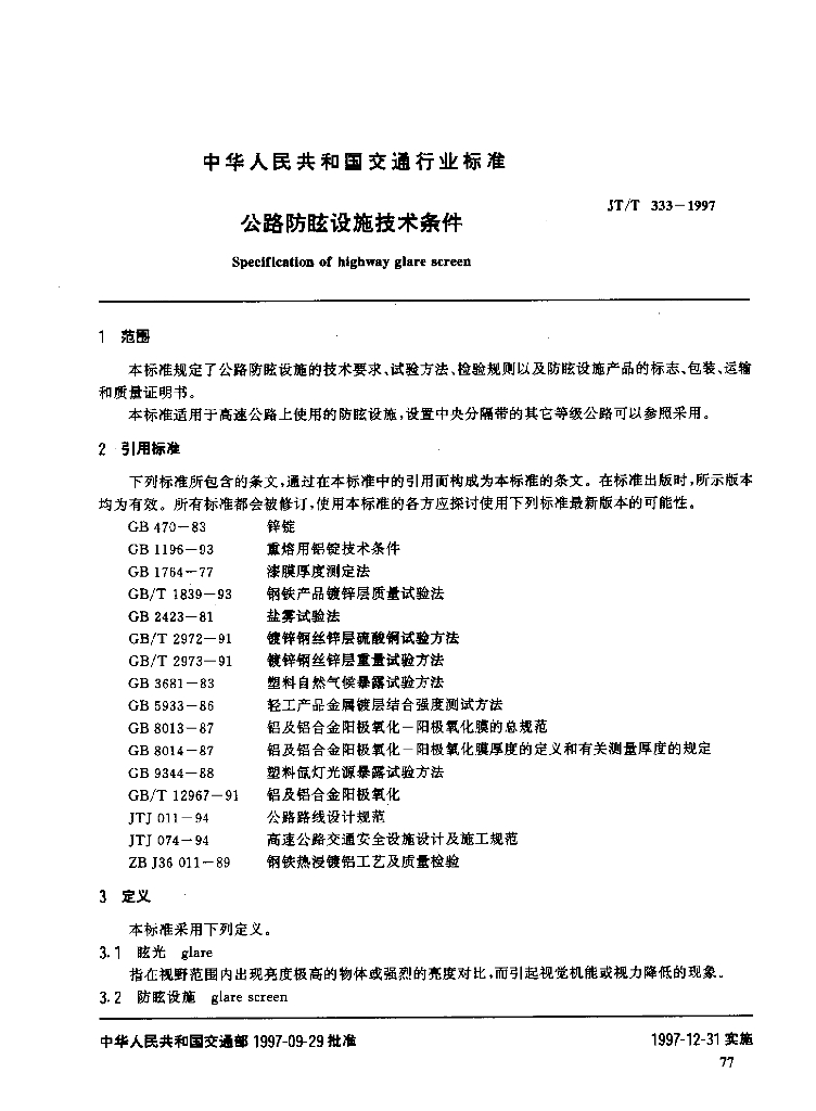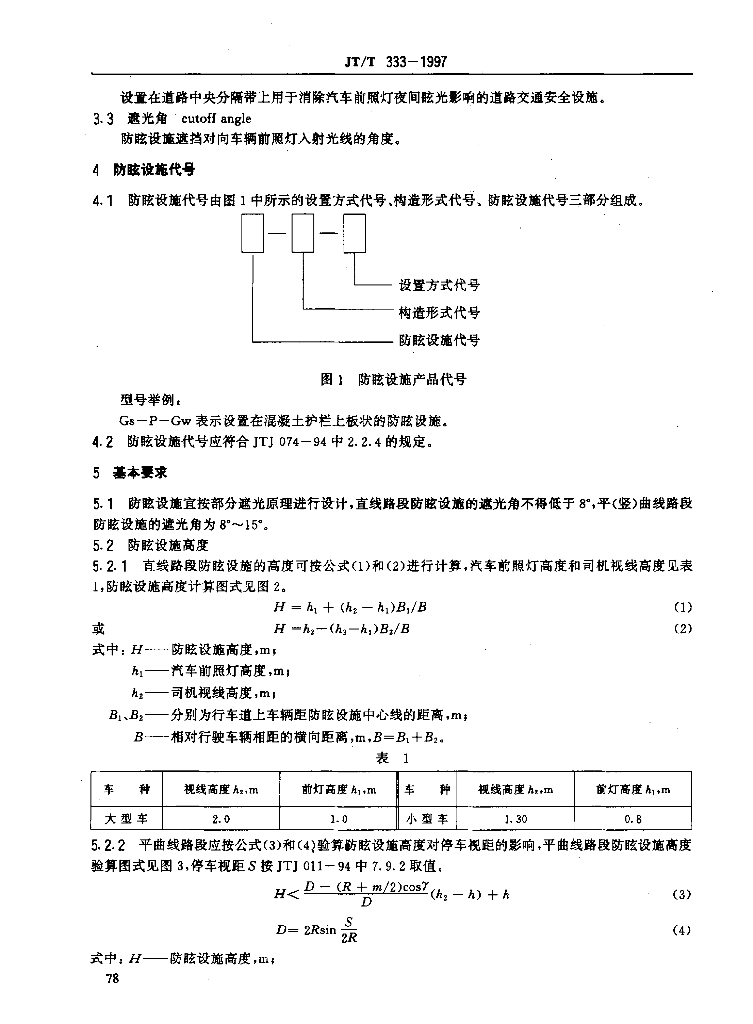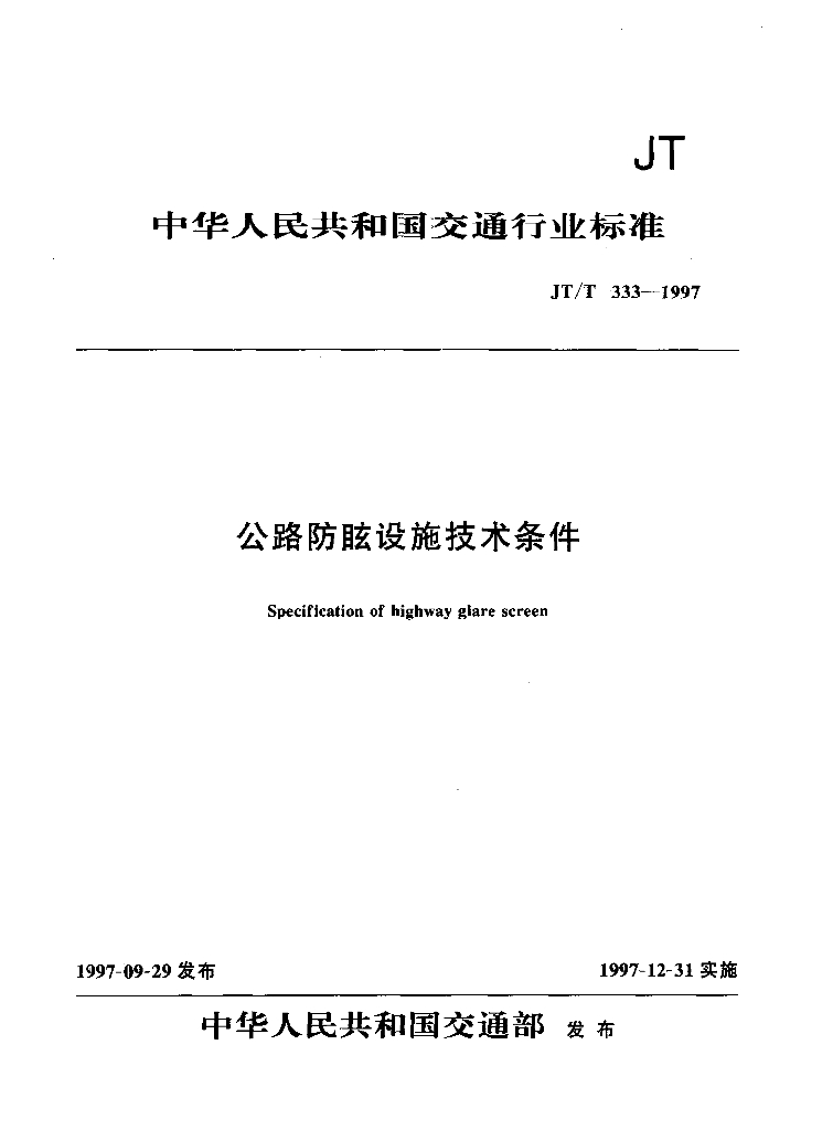 JT/T 333-1997 公路防眩设施技术条件