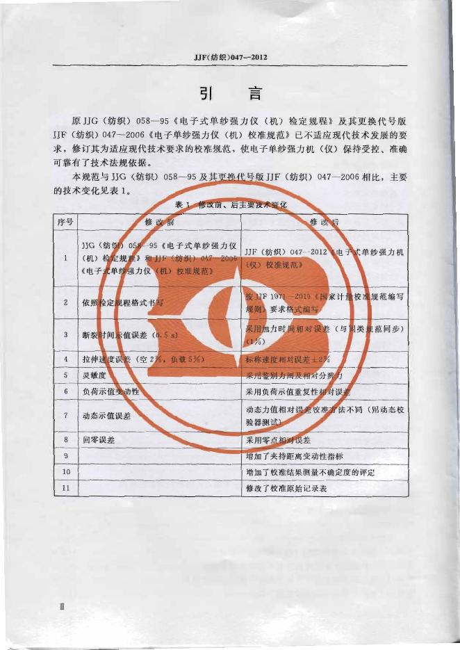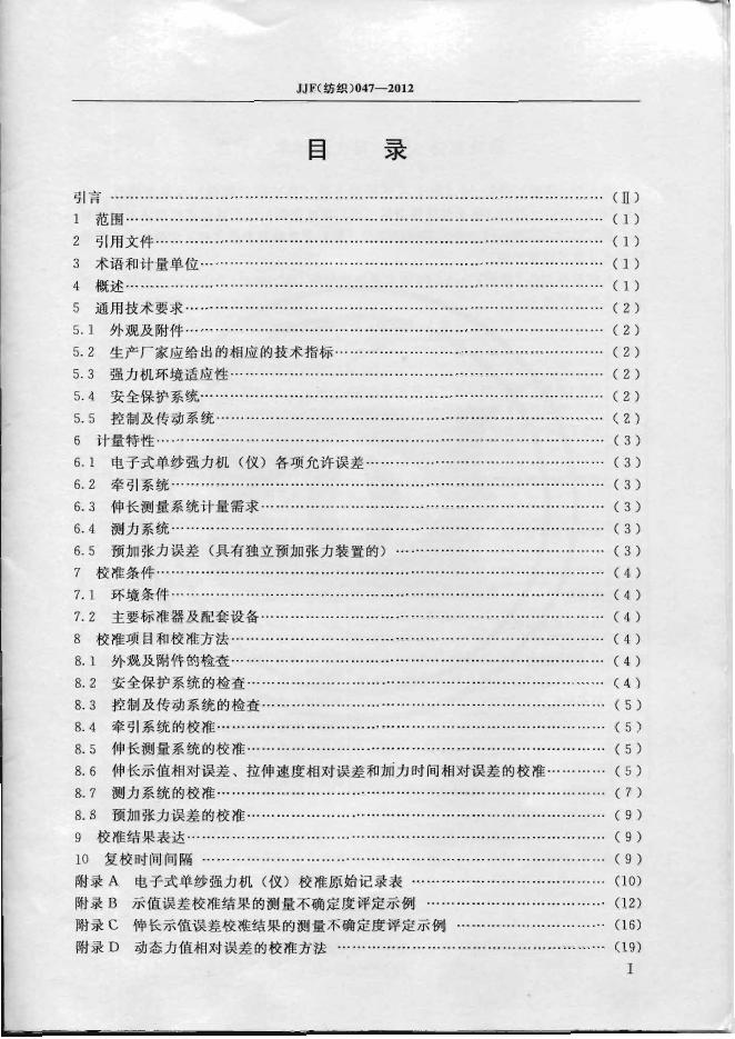 JJG(纺织)047-2012 电子式单纱强力机(仪)校准规范