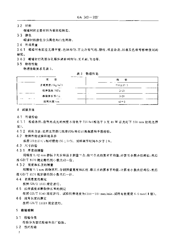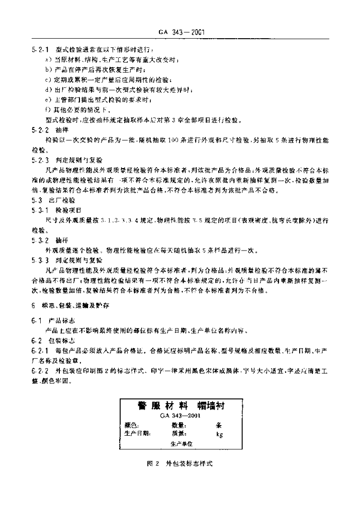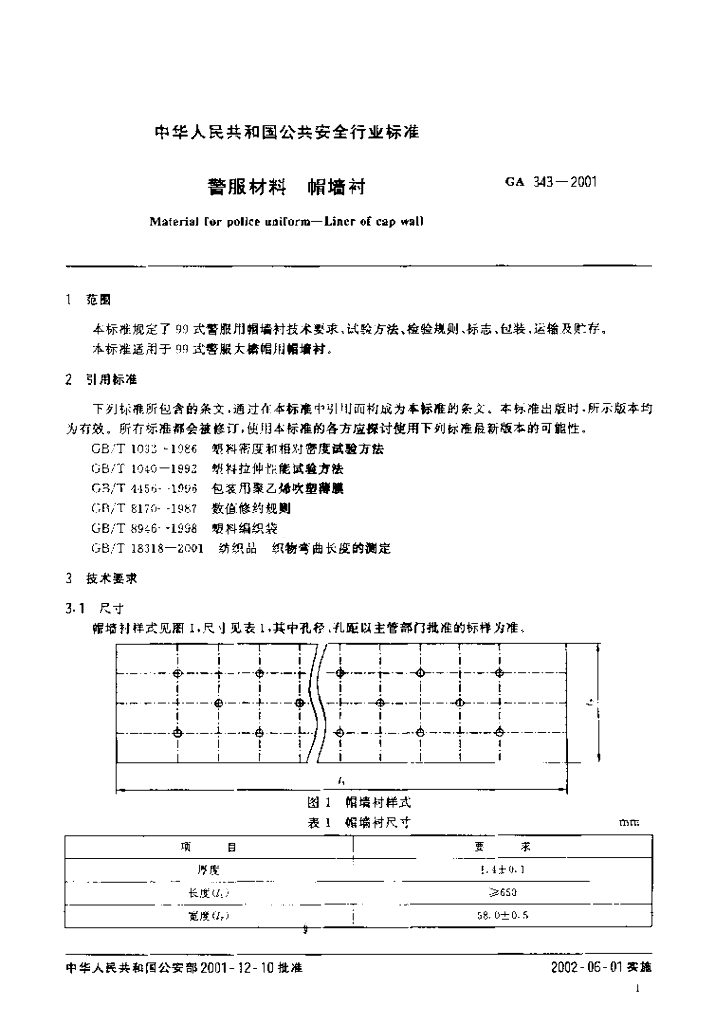 GA 343-2001 警服材料帽墙衬