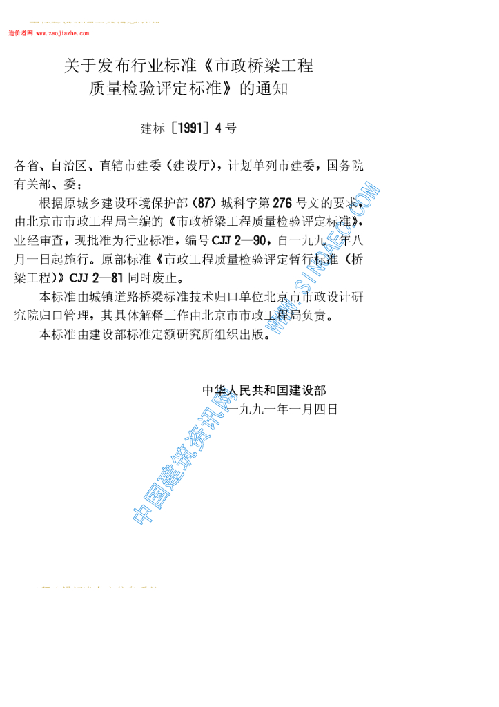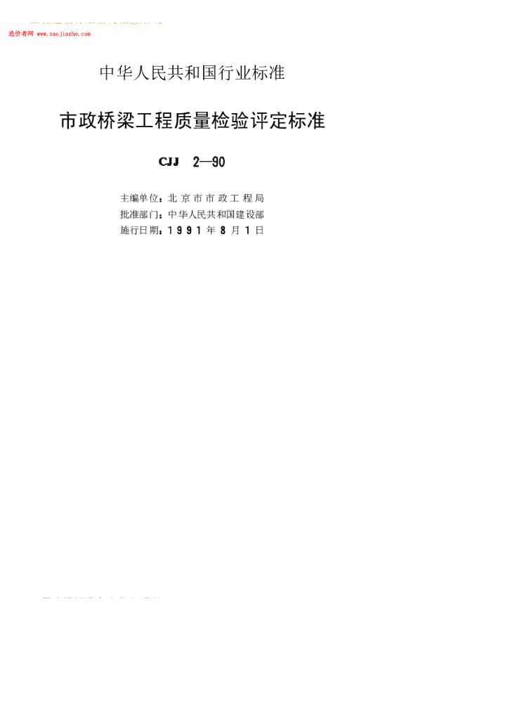 CJJ 2-1990 市政桥梁工程质量检验评定标准