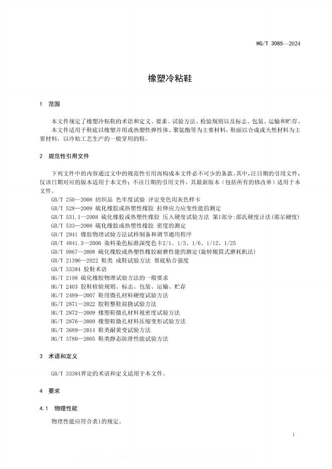 HG/T 3085-2024 橡塑冷粘鞋