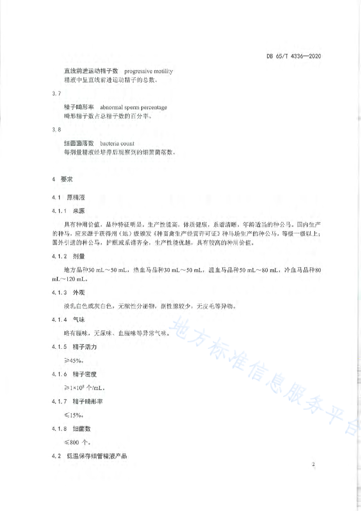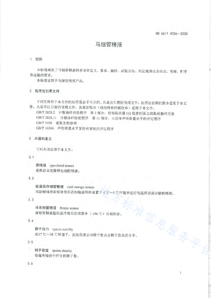 DB65/T 4336-2020 马细管精液
