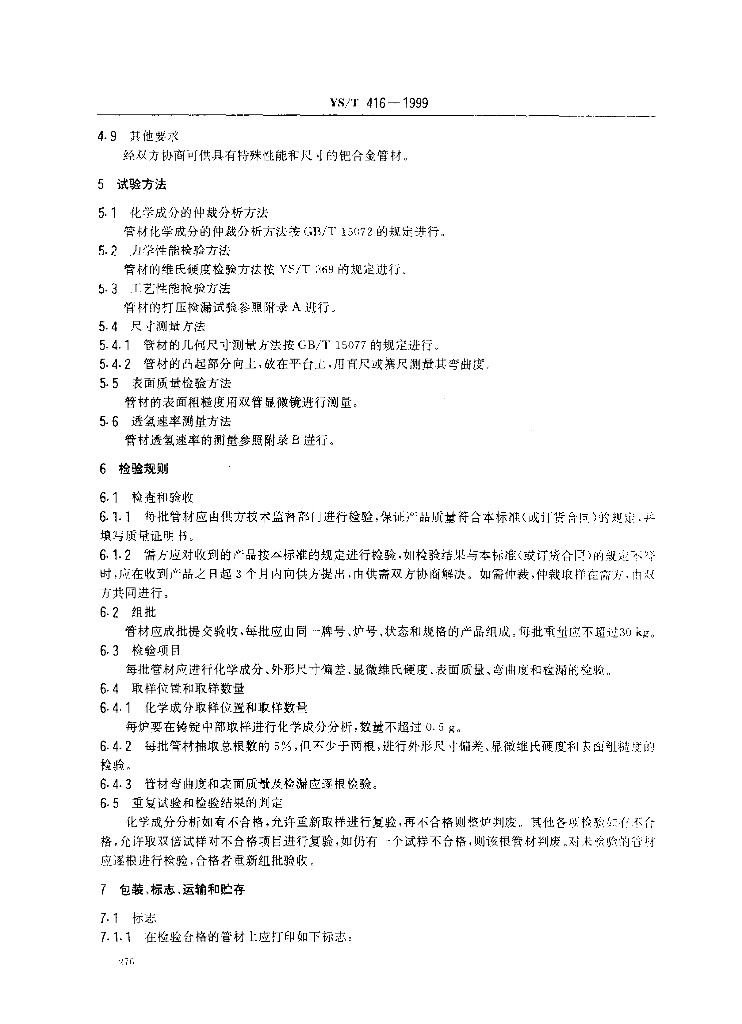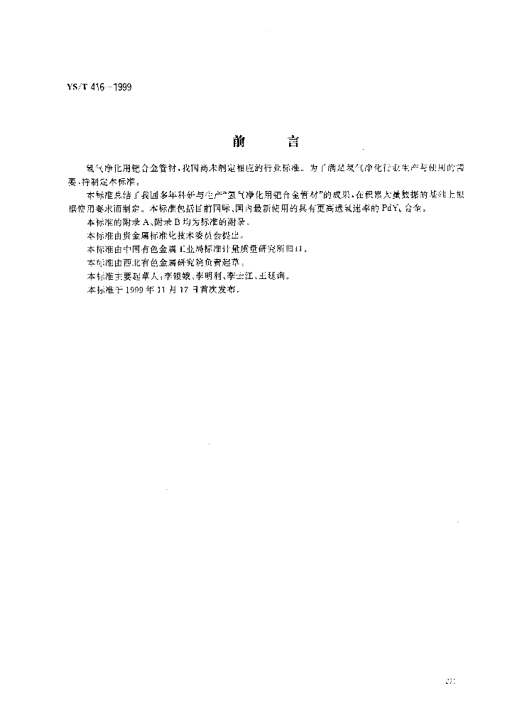 YS/T 416-1999 氢气净化用钯合金管材