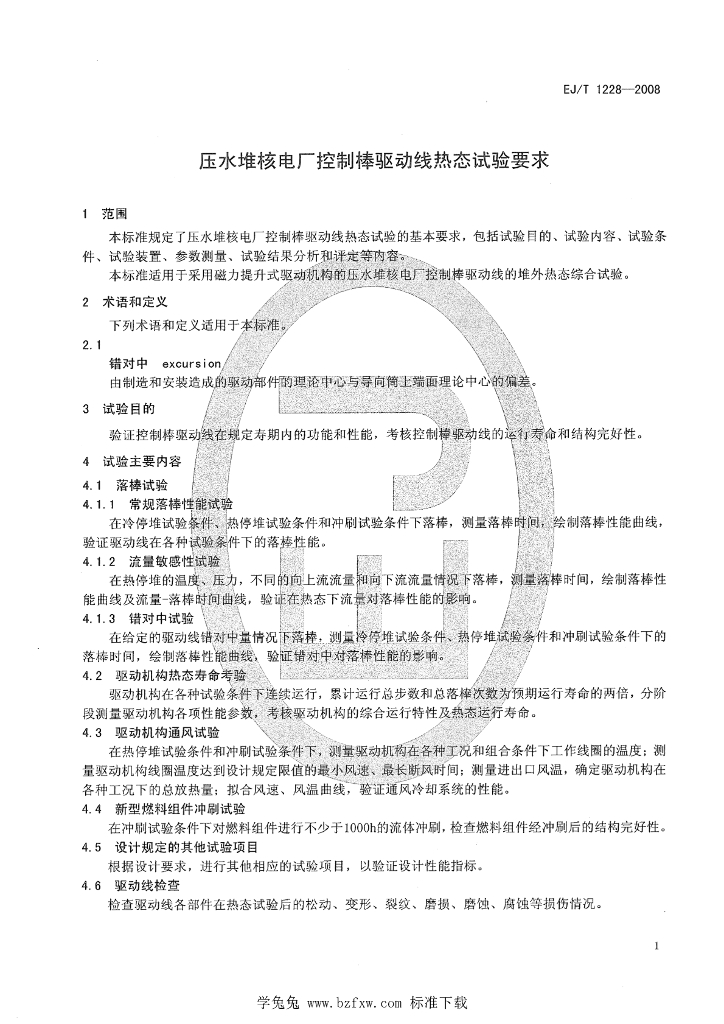 EJ/T 1228-2008 压水堆核电厂控制棒驱动线热态试验要求