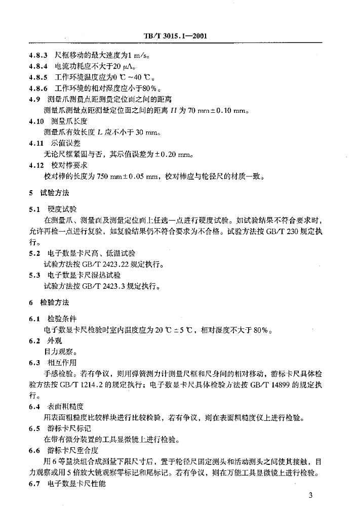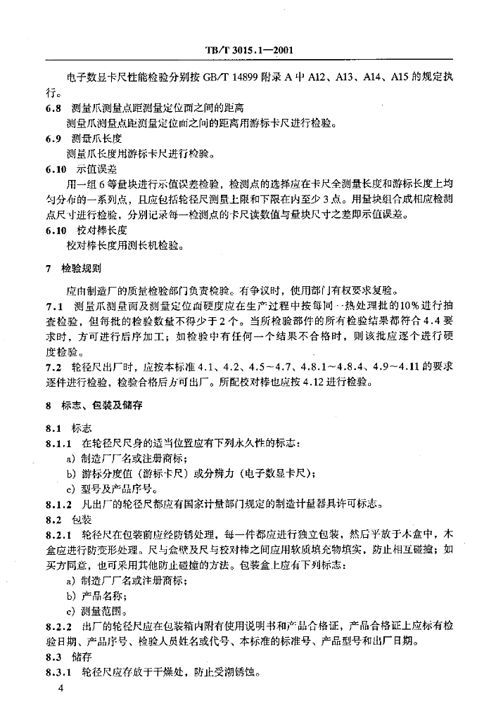TB/T 3015.1-2001 铁道车辆整体车轮外形尺寸检测量具技术条件滚动圆直径卡尺