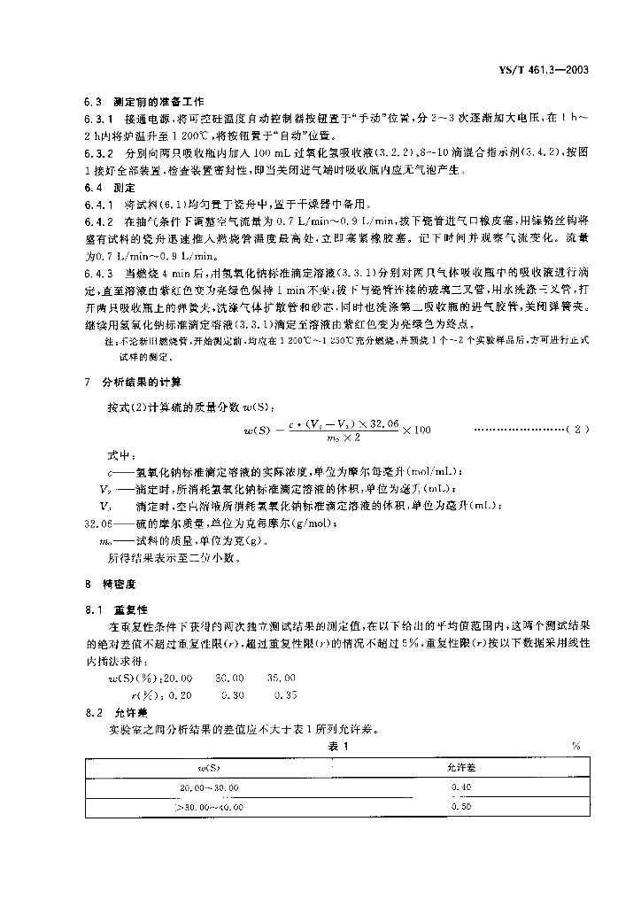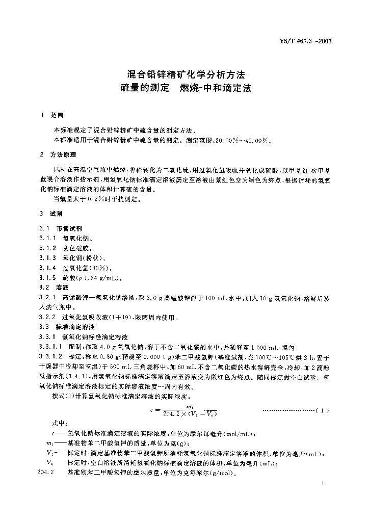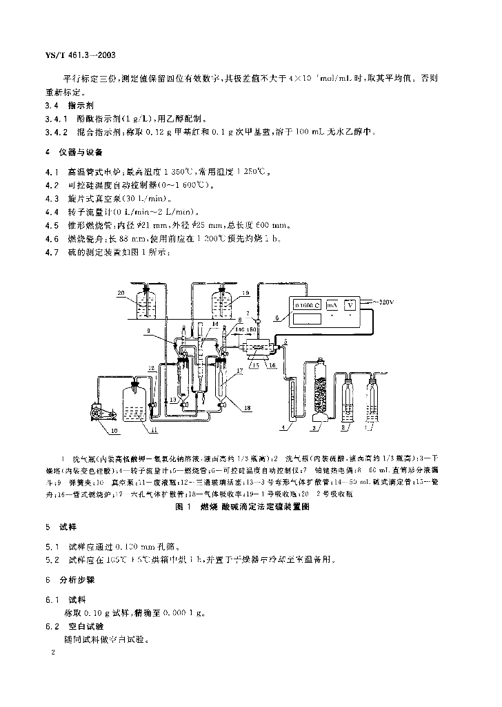 YS/T 461.3-2003 混合铅锌精矿化学分析方法硫量的测定燃烧-中和滴定法