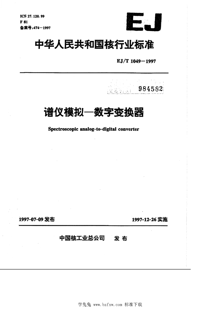 EJ/T 1049-1997 谱仪模拟--数字变换器