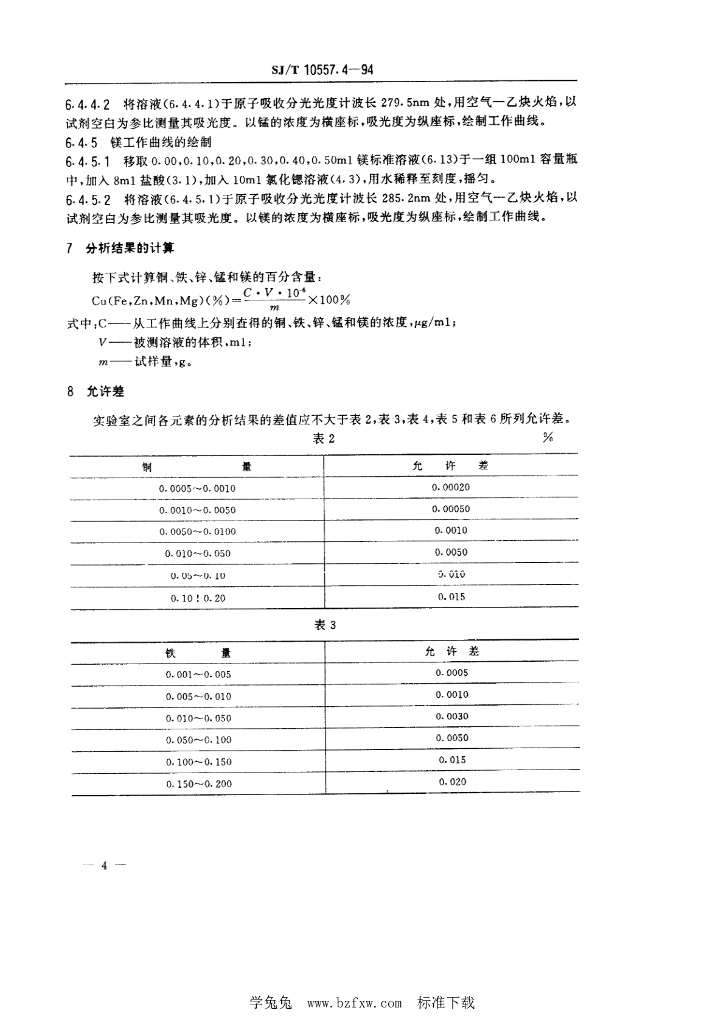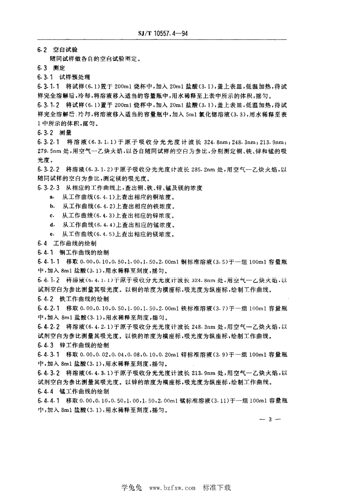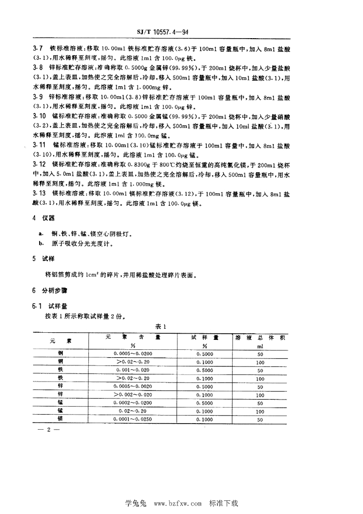 SJ/T 10557.4-1994 电解电容器用铝箔化学分析方法 原子吸收分光光度法测定 铜、铁、锌、锰和镁量