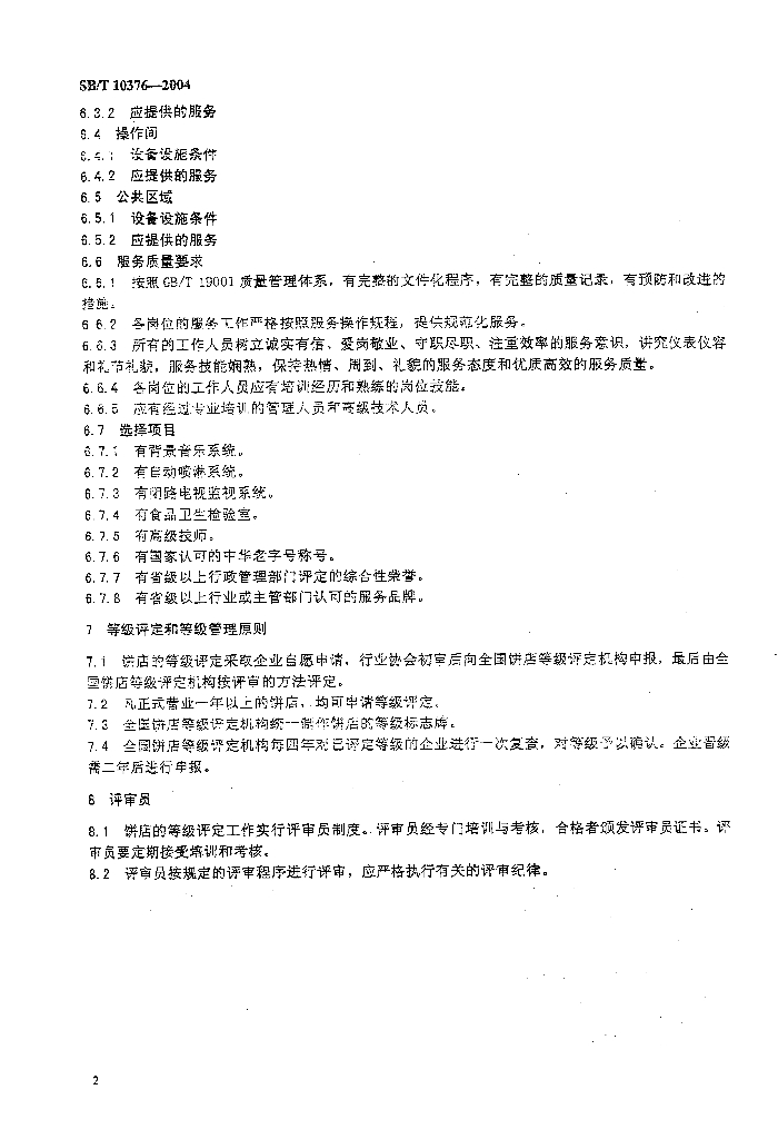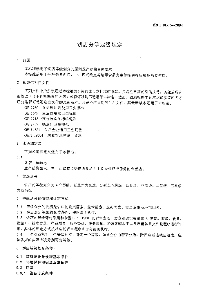 SB/T 10376-2004 饼店分等定级规定