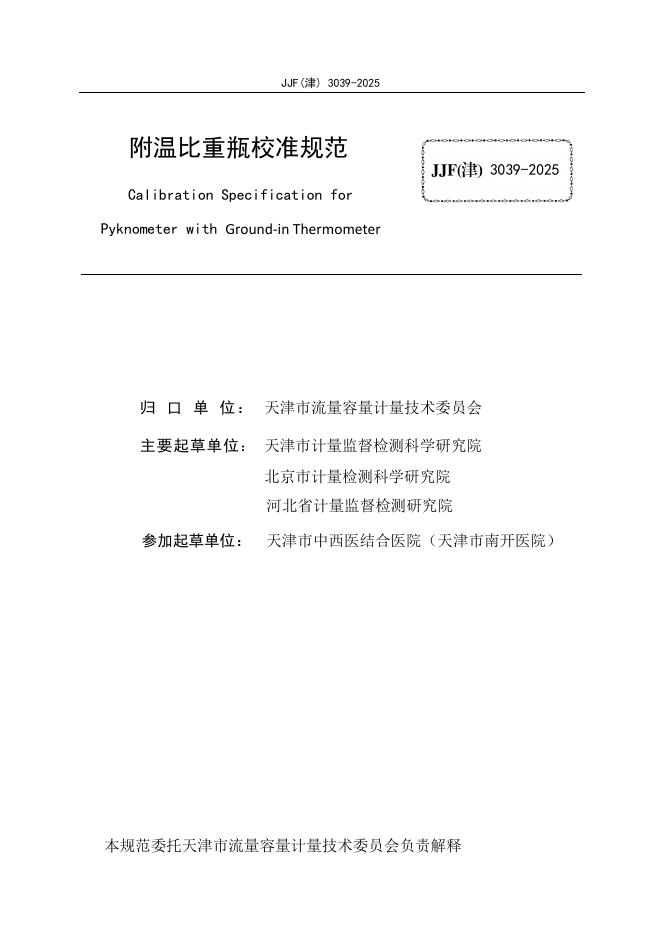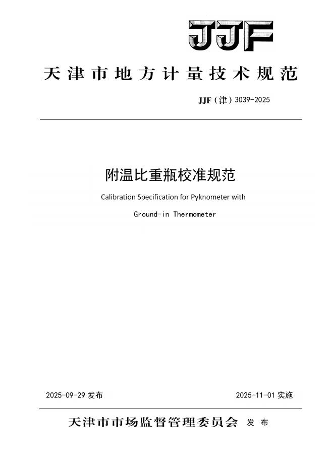 JJF(津)3039-2025 附温比重瓶校准规范