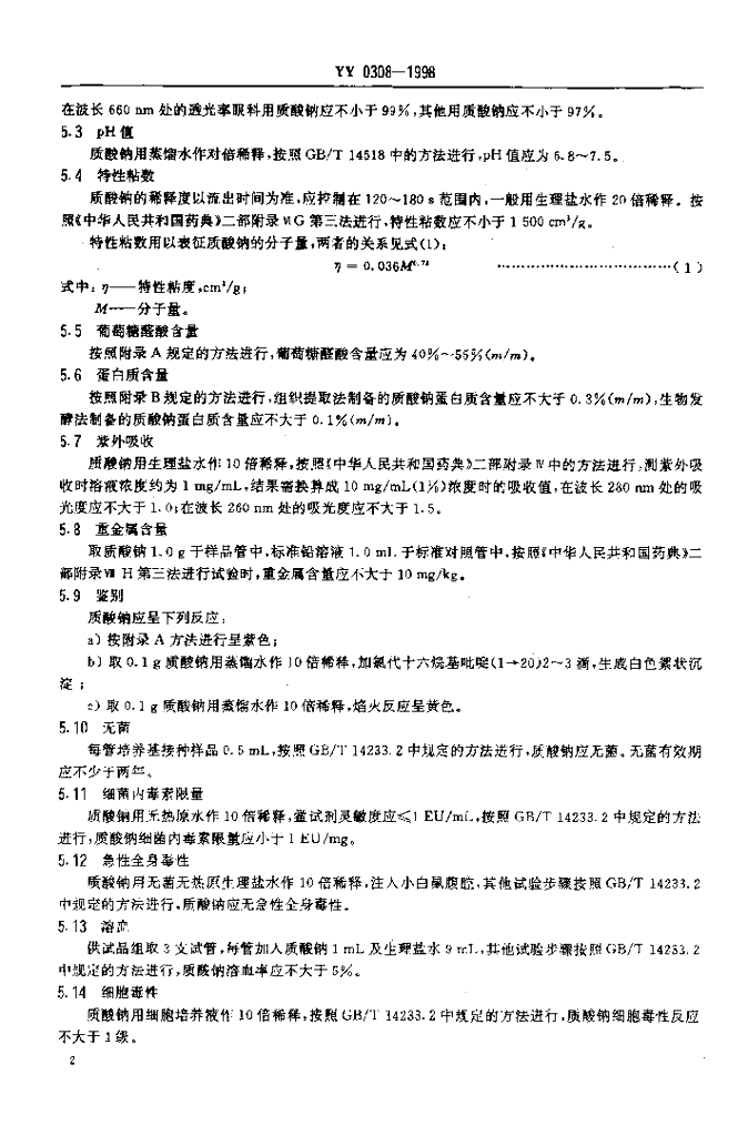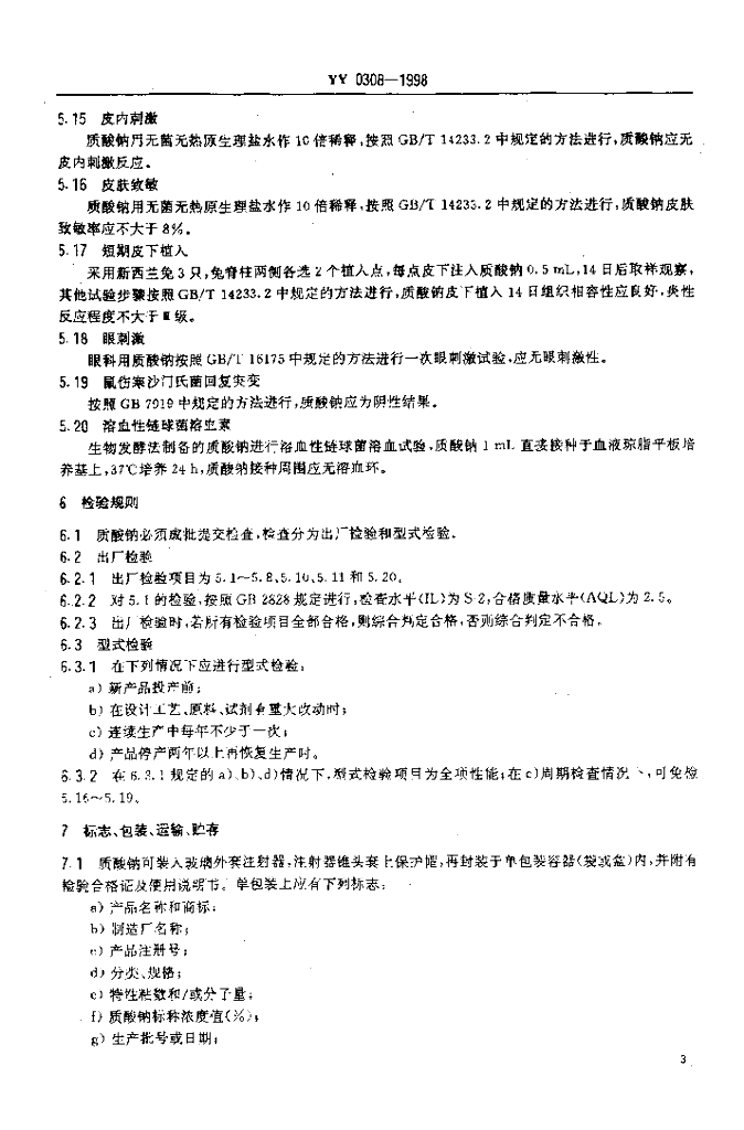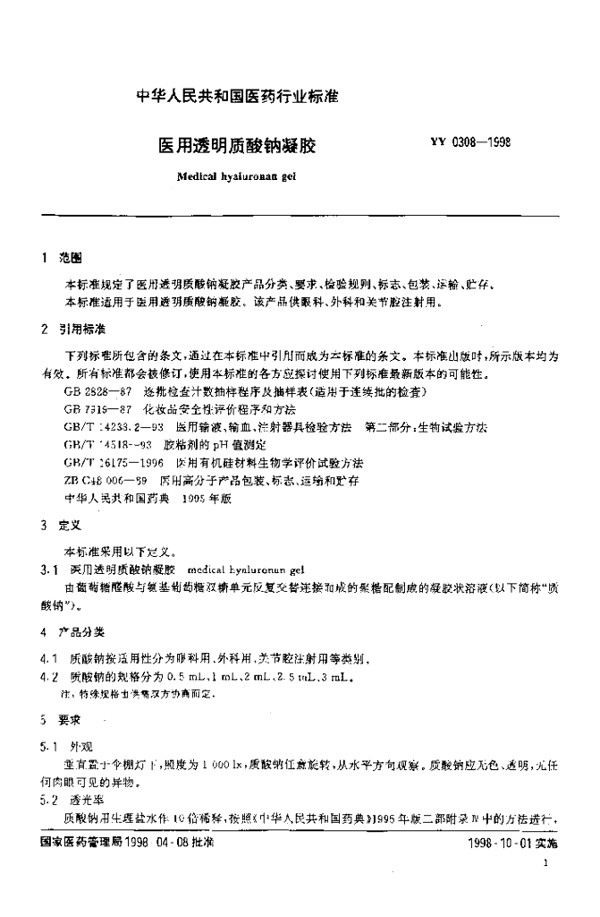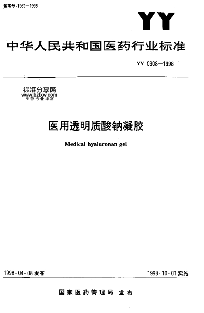 YY 0308-1998 专业丰富医用透明质酸钠凝胶