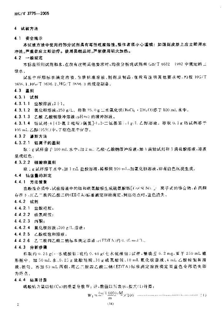 HG/T 3775-2005 饲料级 硫酸钴
