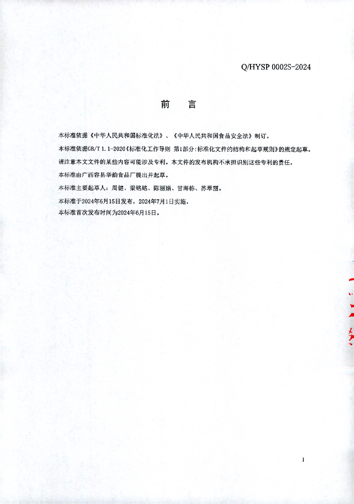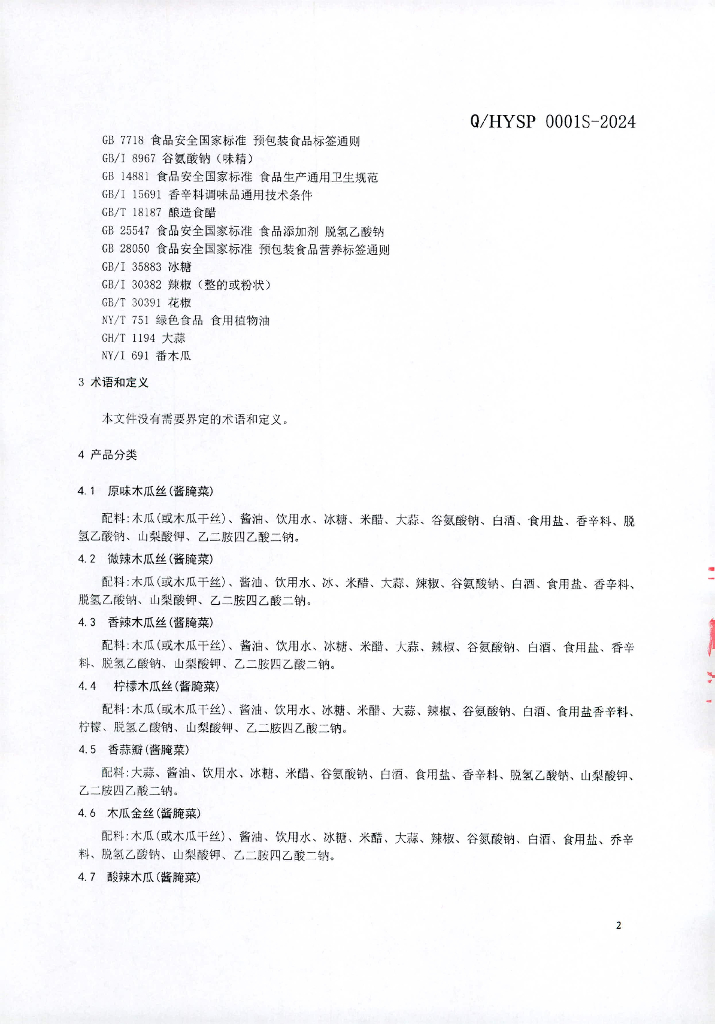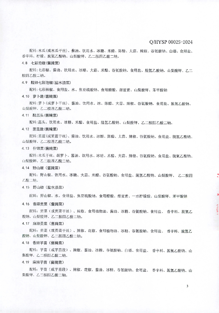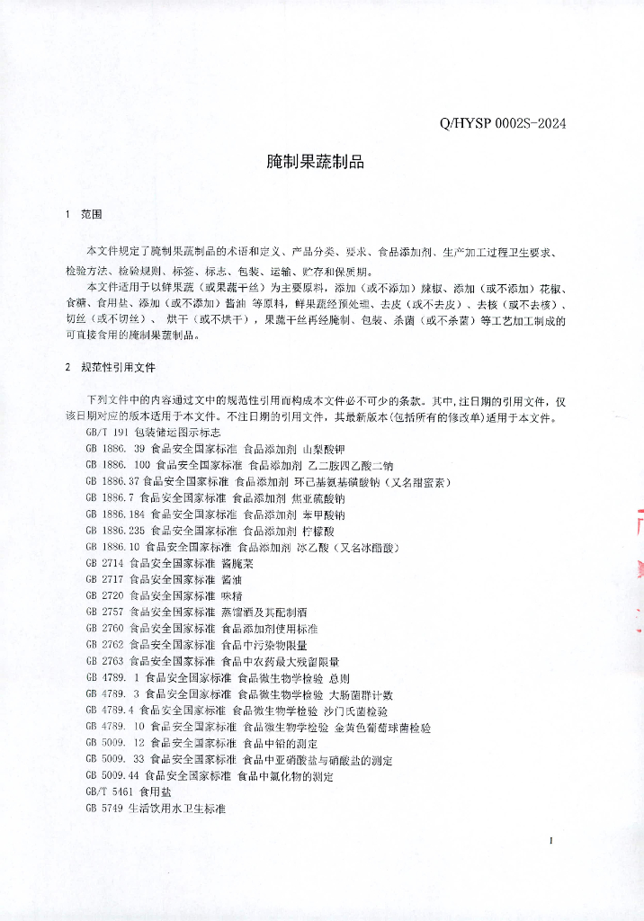 Q/HYSP 0002S-2024 腌制果蔬制品