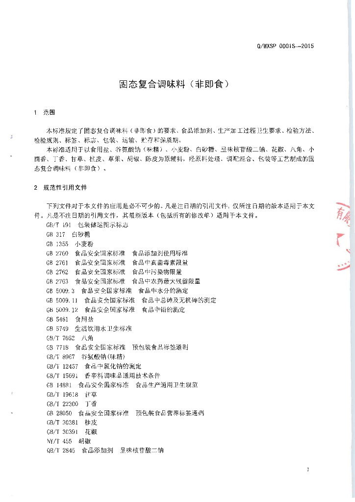 Q/WXSP 0001S-2015 桂林味鑫食品有限公司 固态复合调味料(非即食)