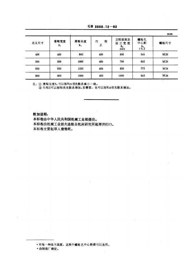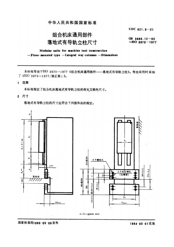 GB/T 3668.12-1983 组合机床通用部件 落地式有导轨立柱尺寸