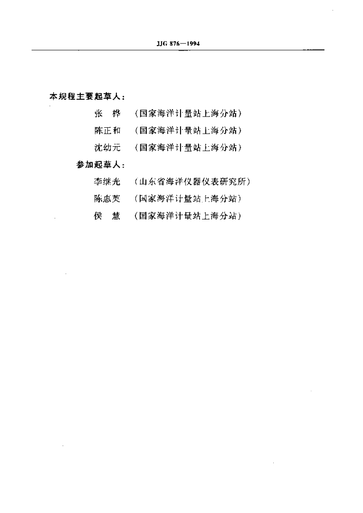 张桦(国家海洋计量站上海分站)、陈正和(国家海洋计量站上海分站)、沈幼元(国家海洋计量站上海分站)、李继光(山东省海洋仪器仪表研究所)、陈惠英(国家海洋计量站上海分站)、侯慧(国家海洋计量站上海分站)