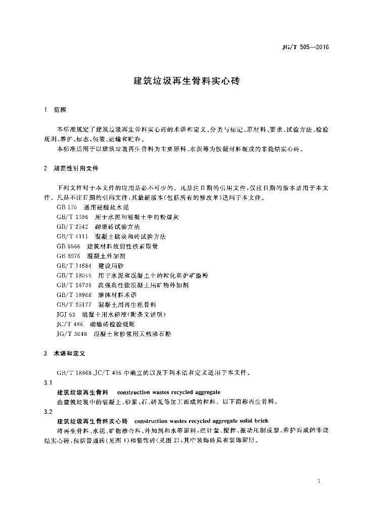 JG/T 505-2016 建筑垃圾再生骨料实心砖