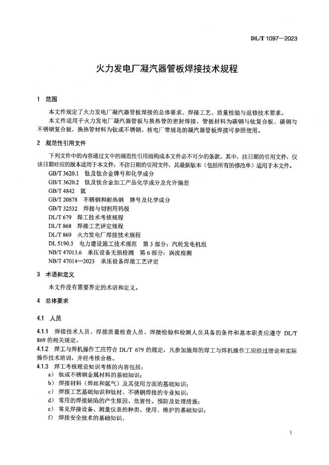 DL/T 1097-2023 火力发电厂凝汽器管板焊接技术规程