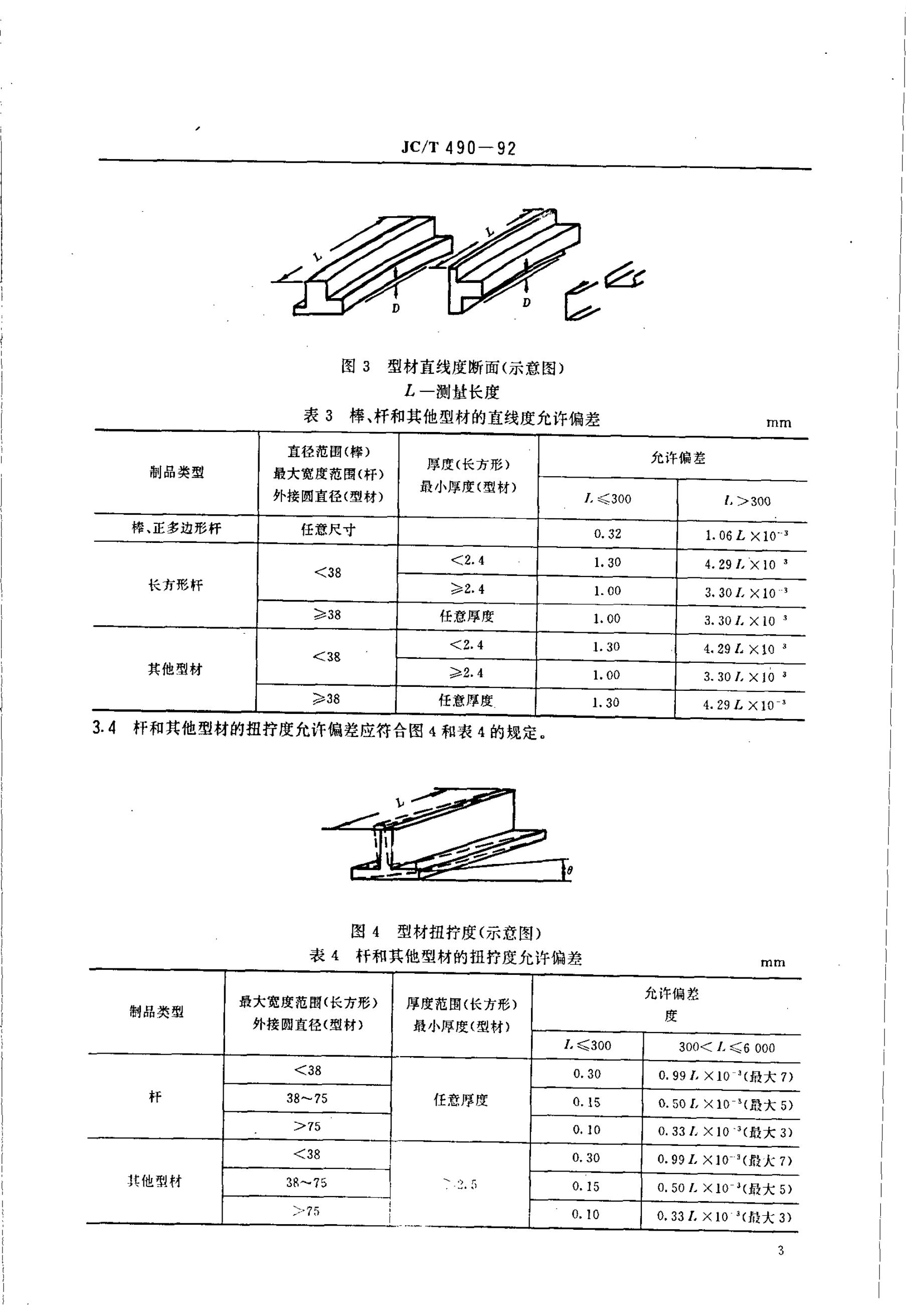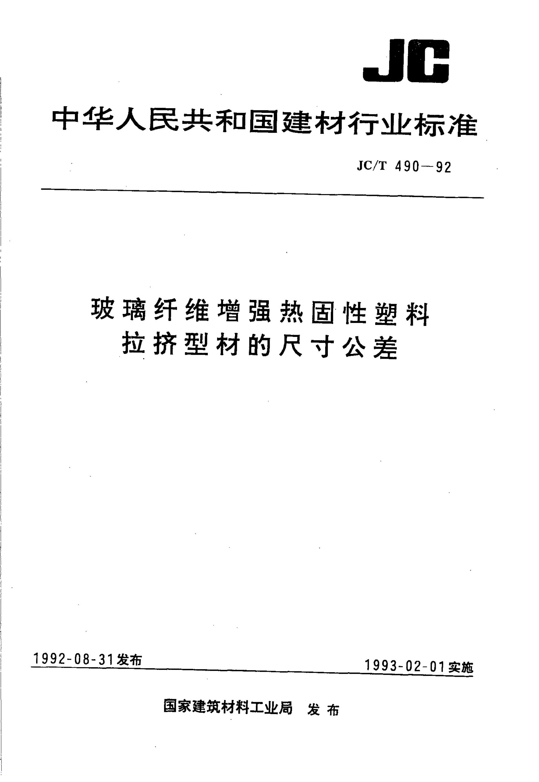 JC/T 490-1991 玻璃纤维增强热固性塑料拉挤型材的尺寸公差