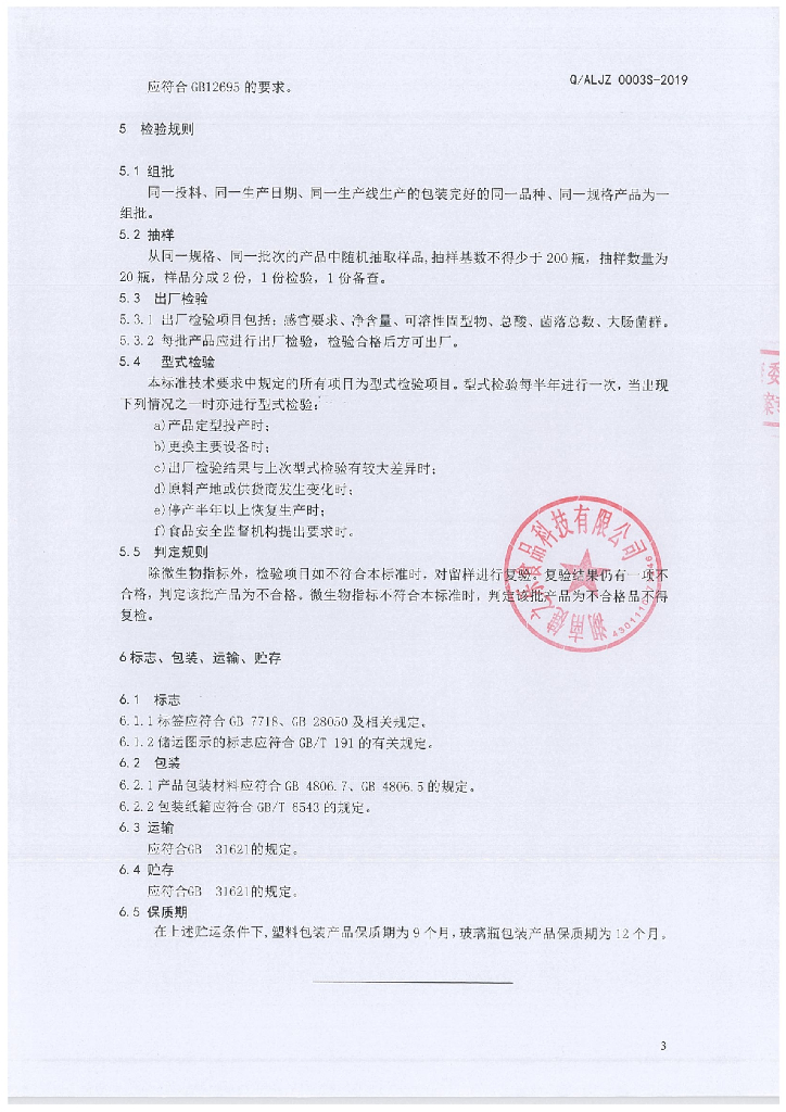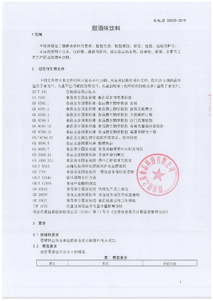 Q/ALJZ 0003S-2019 甜酒味饮料