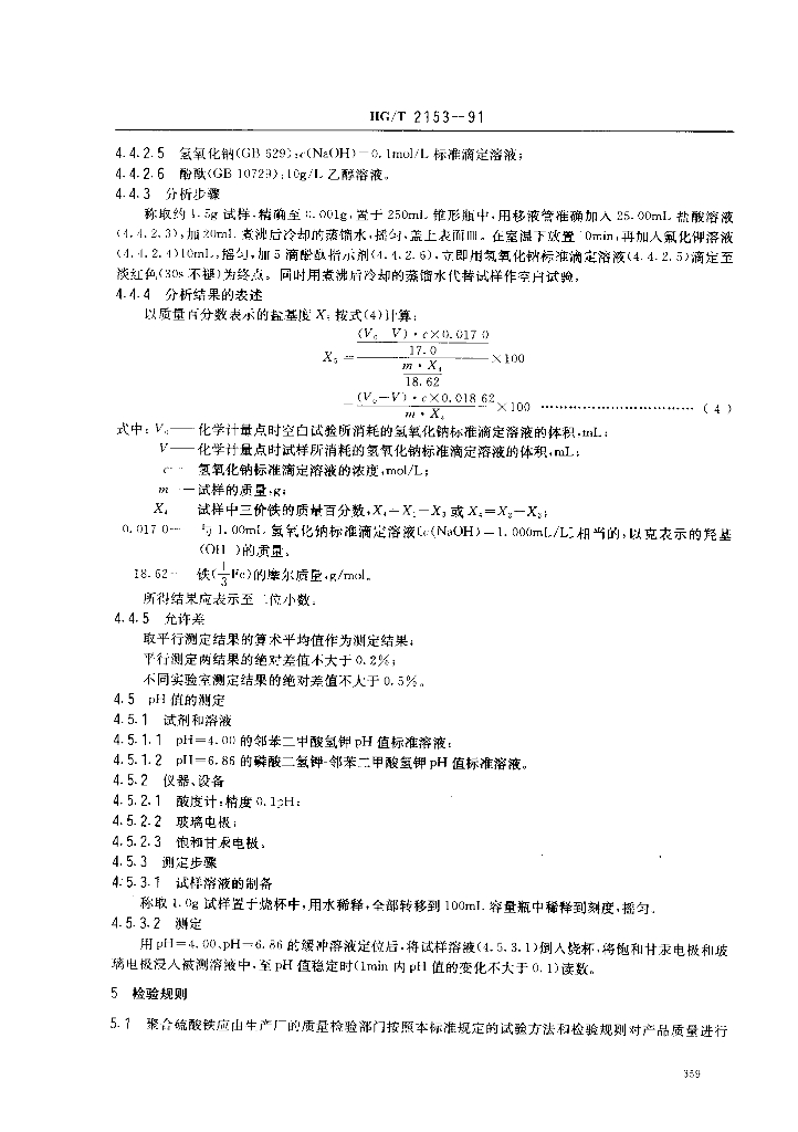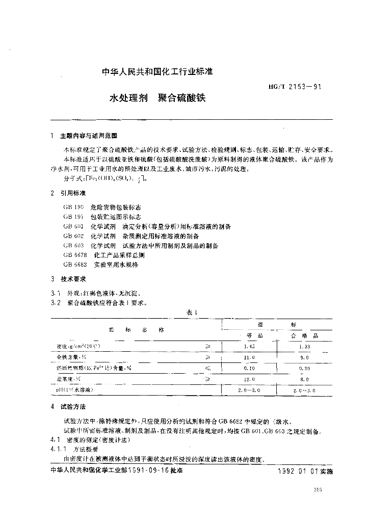 HG 2153-1991 水处理剂 聚合硫酸铁
