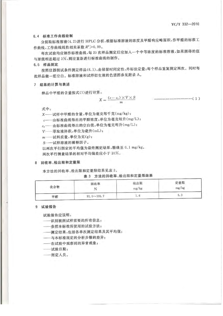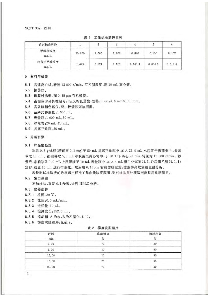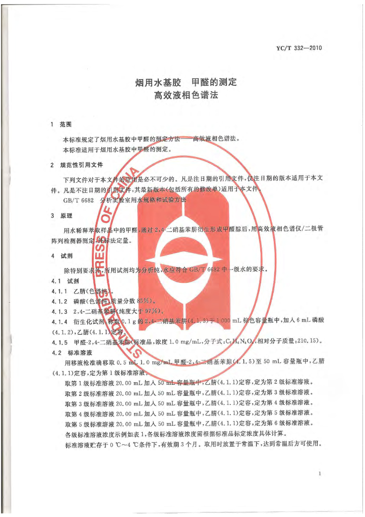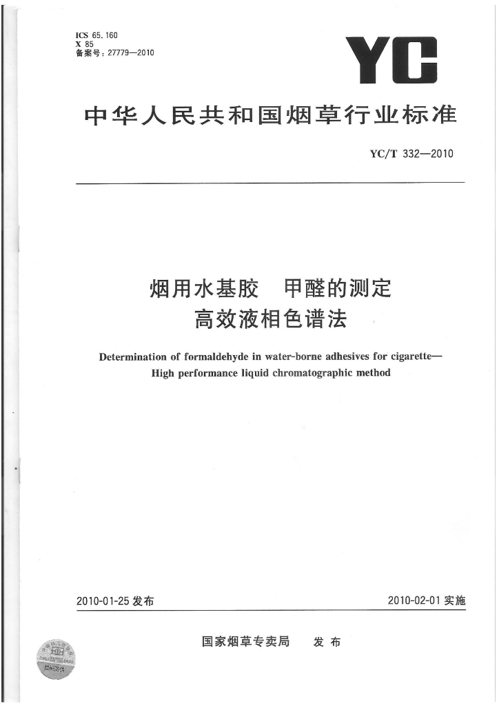 YC/T 332-2010 烟用水基胶 甲醛的测定 高效液相色谱法