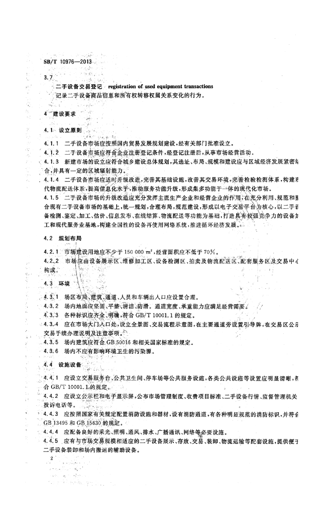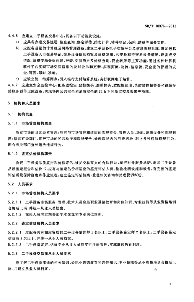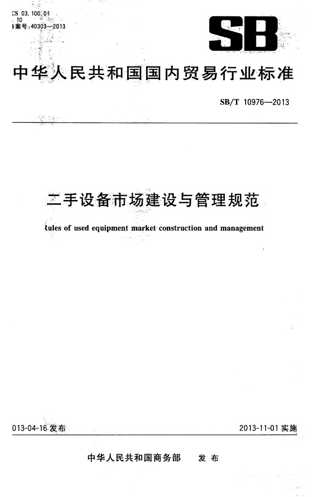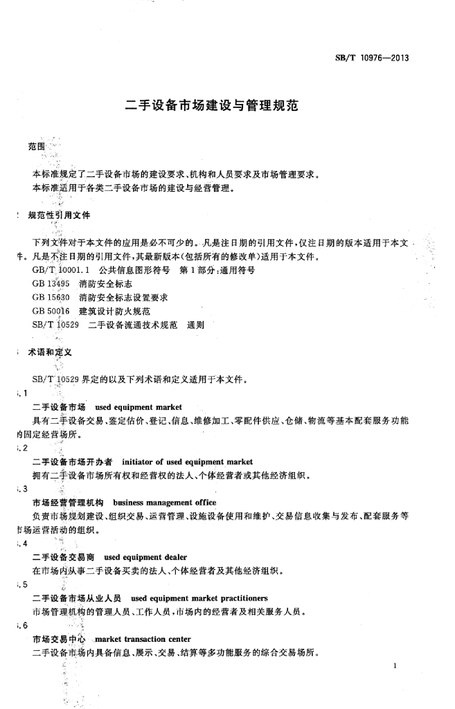 SB/T 10976-2013 二手设备市场建设与管理规范
