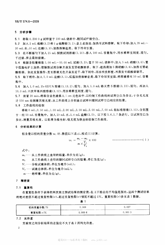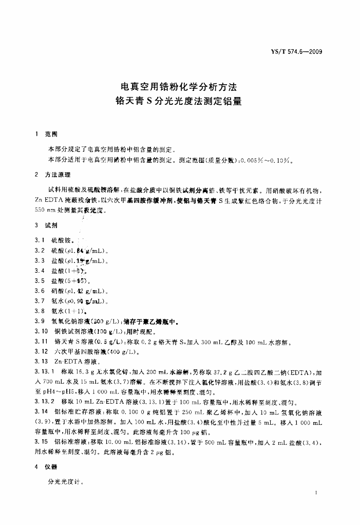 YS/T 574.6-2009 电真空用锆粉化学分析方法铬天青S分光光度法测定铝量